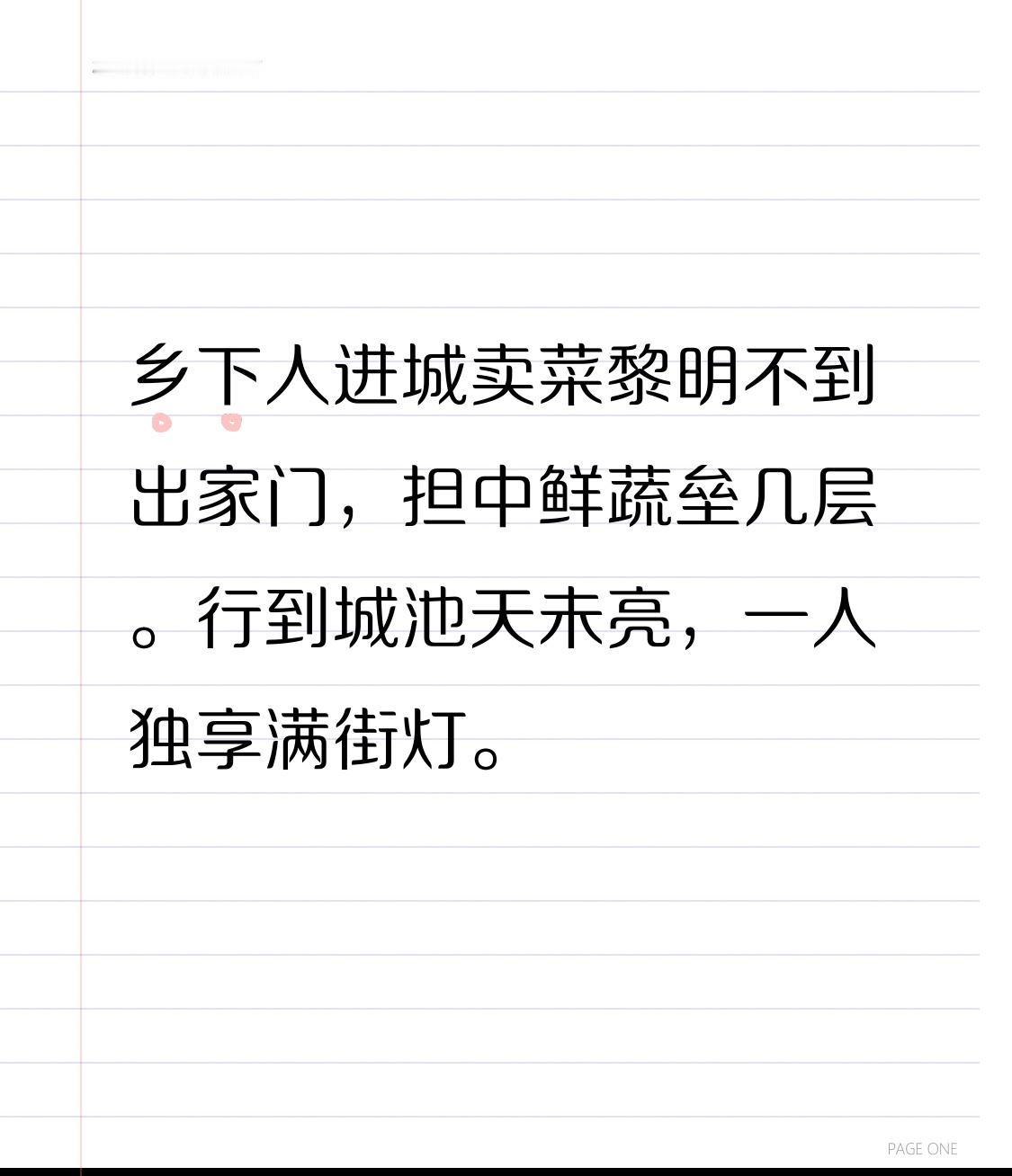 乡下人进城卖菜 黎明不到就出门, 一副菜担两头沉。 来到城池天未亮, 独自享受