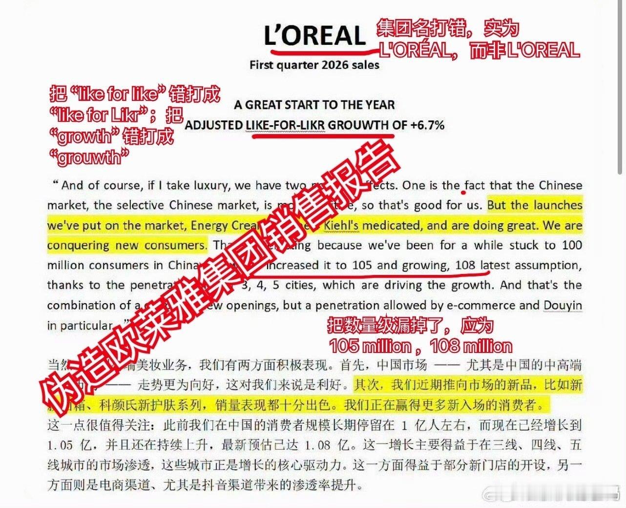 这个粉群天天造谣式吹比...哪家财神爷会短代几个月不续约?不懂就问,伪造财报类能被抓吗? 造假造的漏洞百出,连集团名字都打错,就忽悠文芒粉群对吧?又避免被集团较真进橘子。欧莱雅集团真实报告在这里🔗网页链接