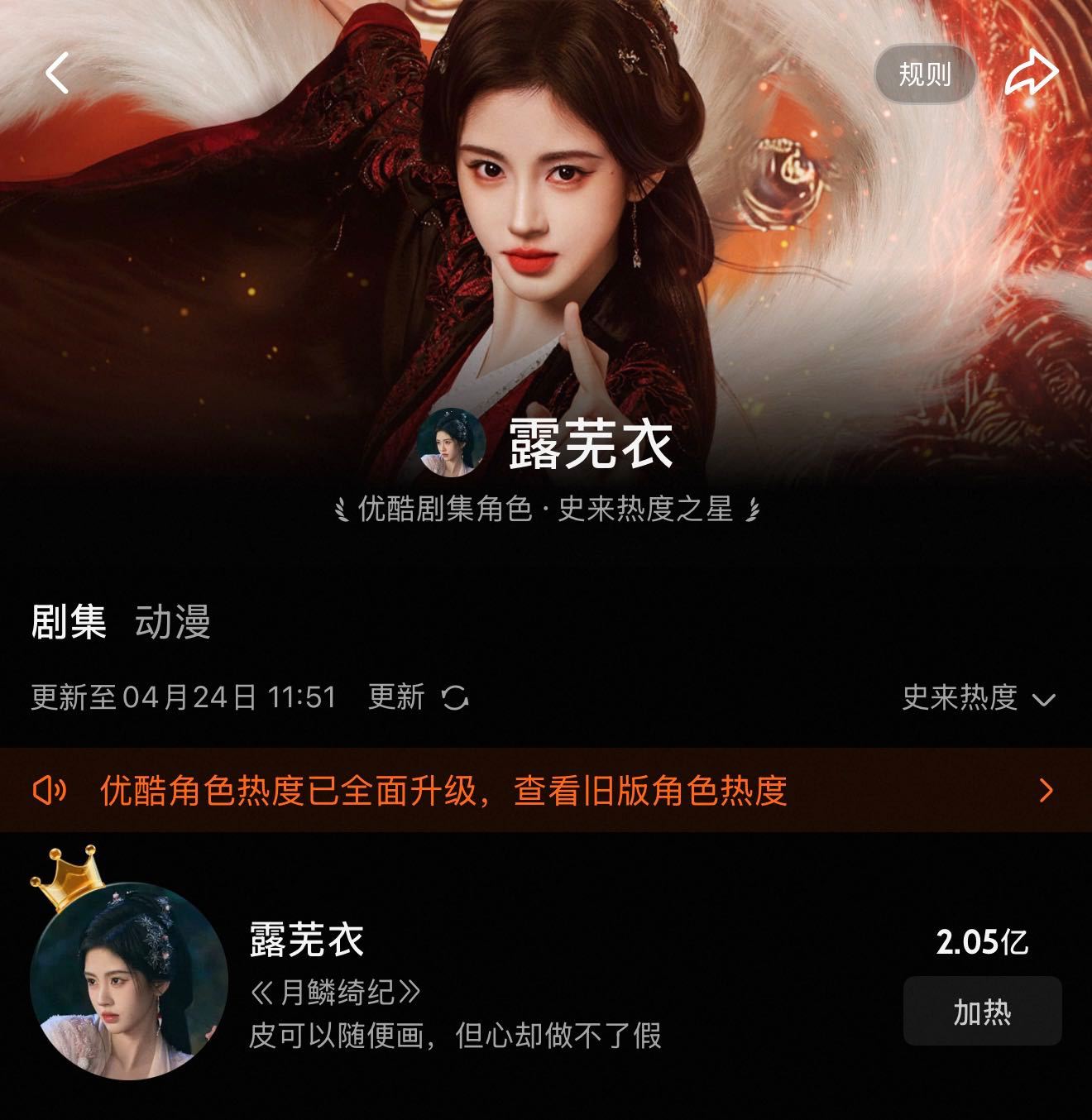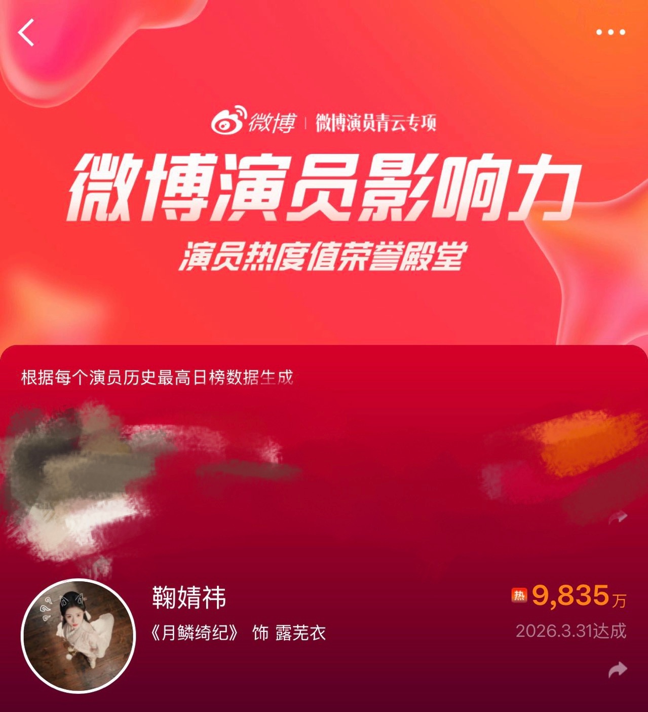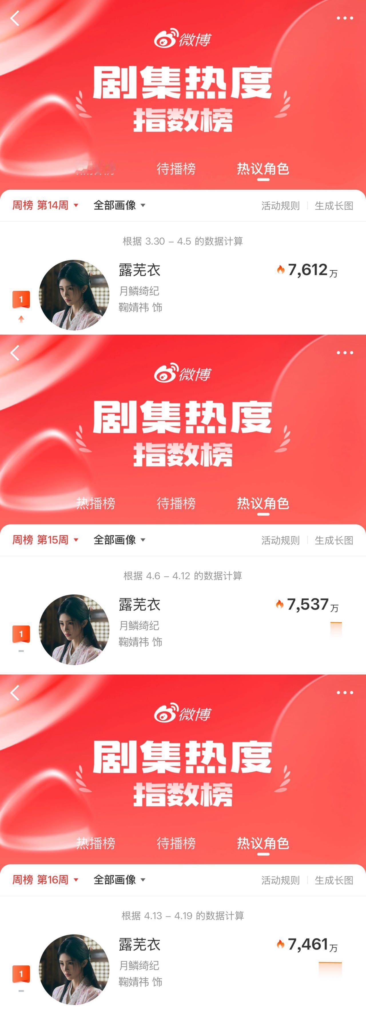 月鳞绮纪主演收官文 鞠婧祎月鳞绮纪各个数据都好牛啊!德塔文&V榜&酷云三榜登顶,👖角色热度破2亿还是改版后的热度TOP1,微&抖的角色热度也是TOP1好多1啊🤤🤤