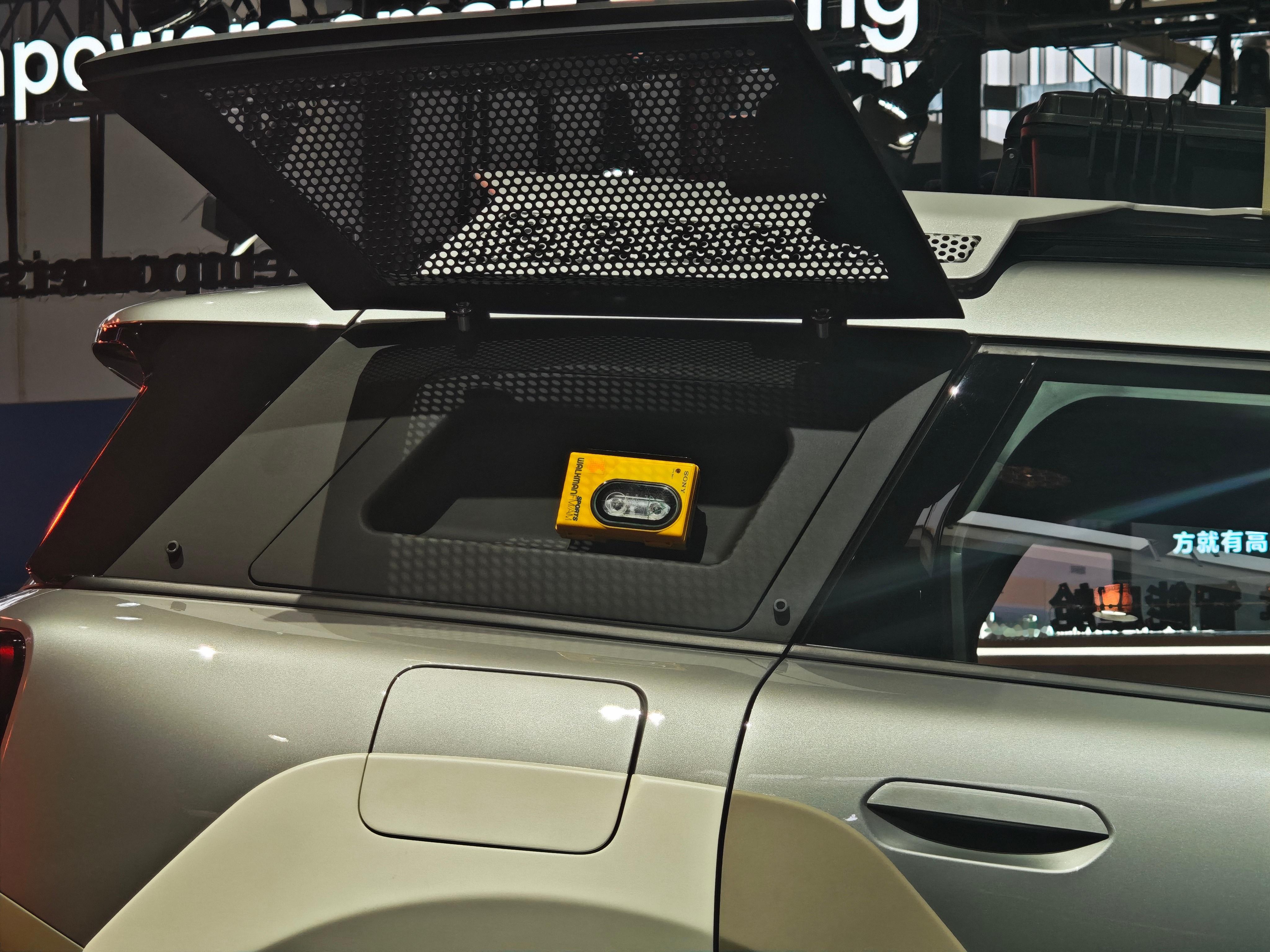 3D打印的轮毂盖、以及尾窗一侧装了定制音箱、另一侧是复古随声听,你看它会玩吗?
