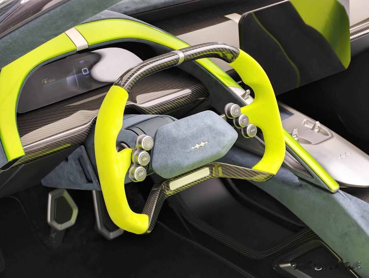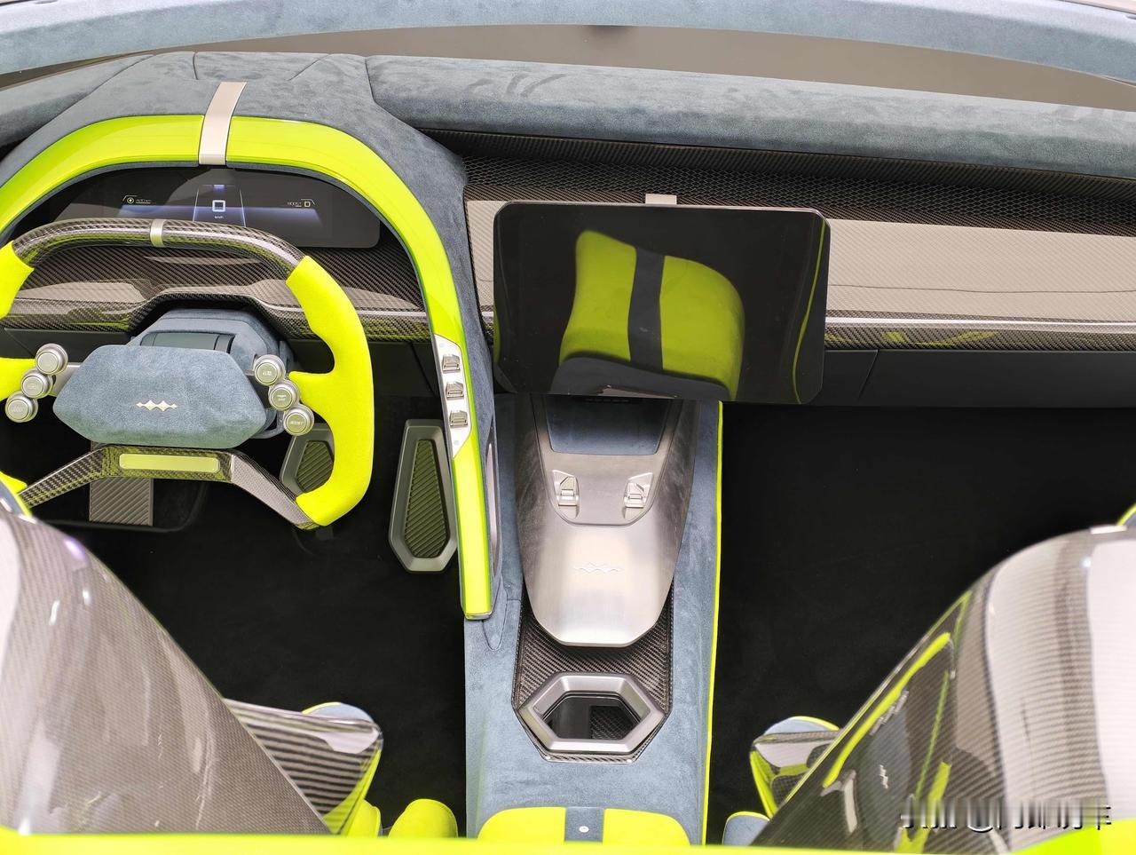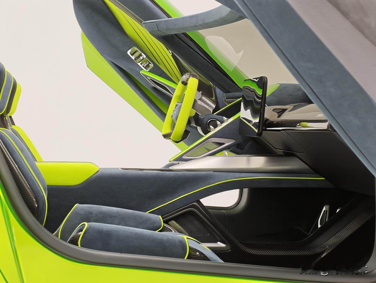 再看内饰,翻毛皮的方向盘、撞色的缝线,还有随处可见的碳纤维细节,整体氛围偏运动但不浮夸,能感觉到是真的在往性能和质感上靠。轮毂和刹车的细节也很到位,和车身配色呼应得刚刚好。