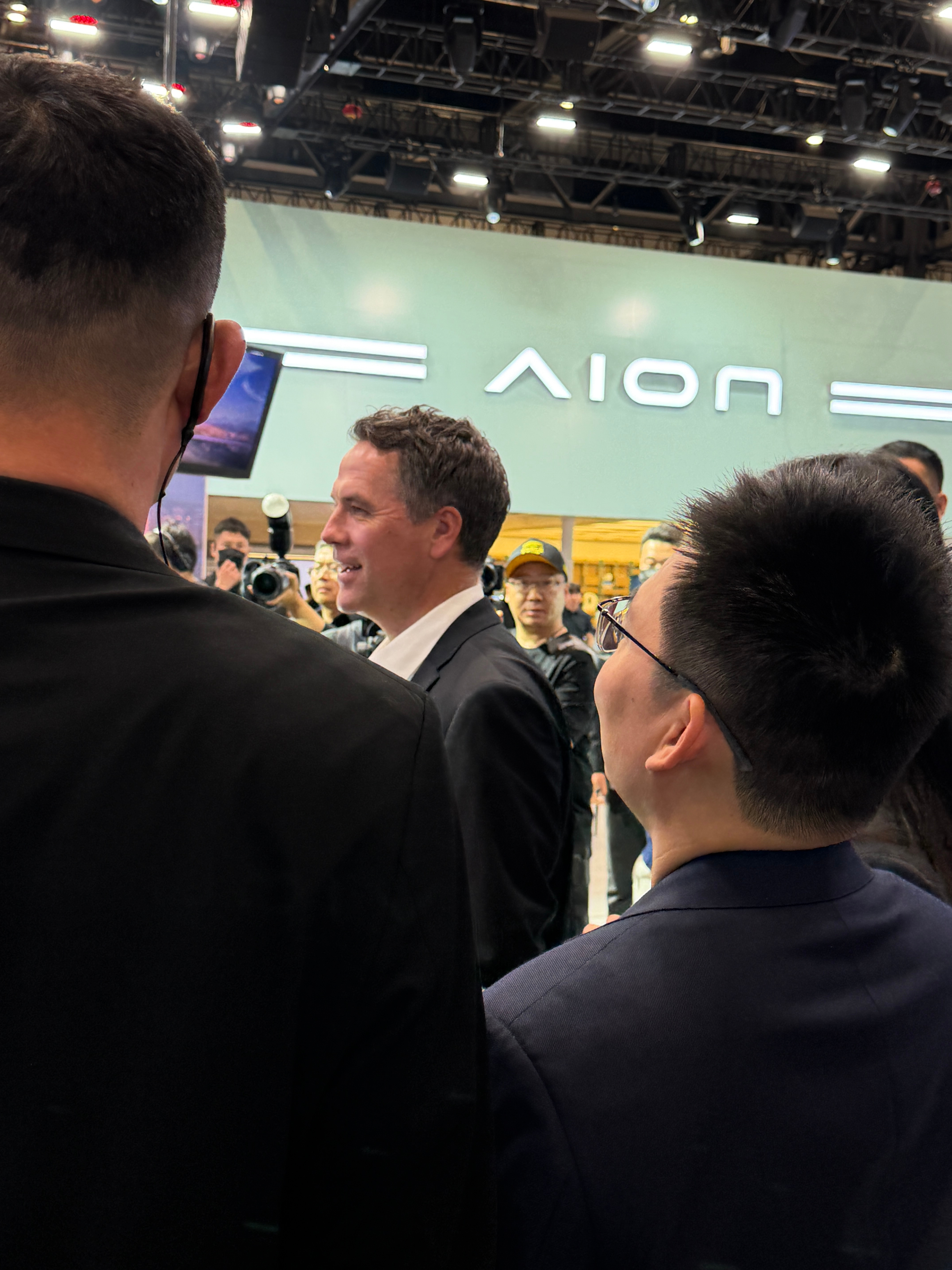 打开卡昊铂站台,刚好看到昊铂S600的推荐官迈克尔.欧文在看车,昊铂S600作为首款SUV,整体感觉既有轿车的运动又有SUV的空间,车前脸依旧是山海美学的设计,H型车前灯,还支持交互矩阵。整车感觉还挺优雅的。