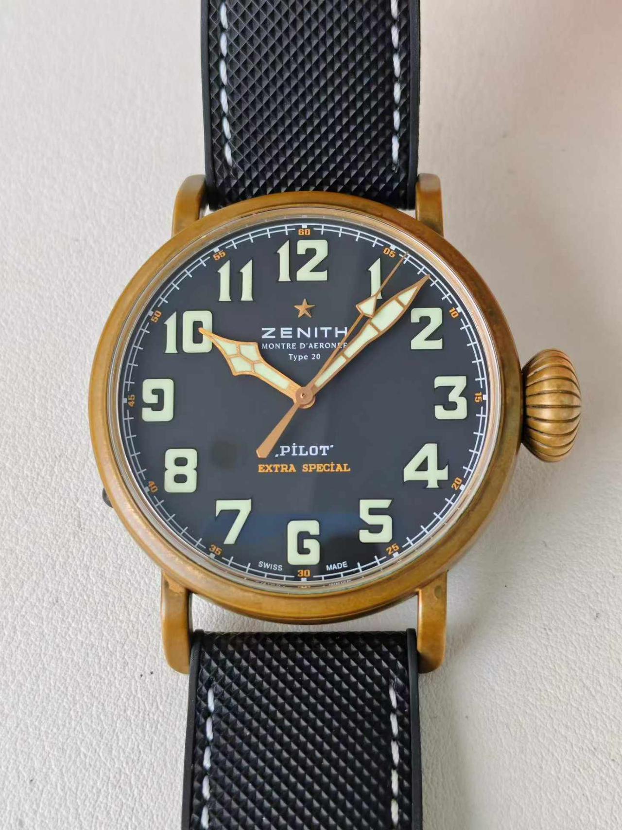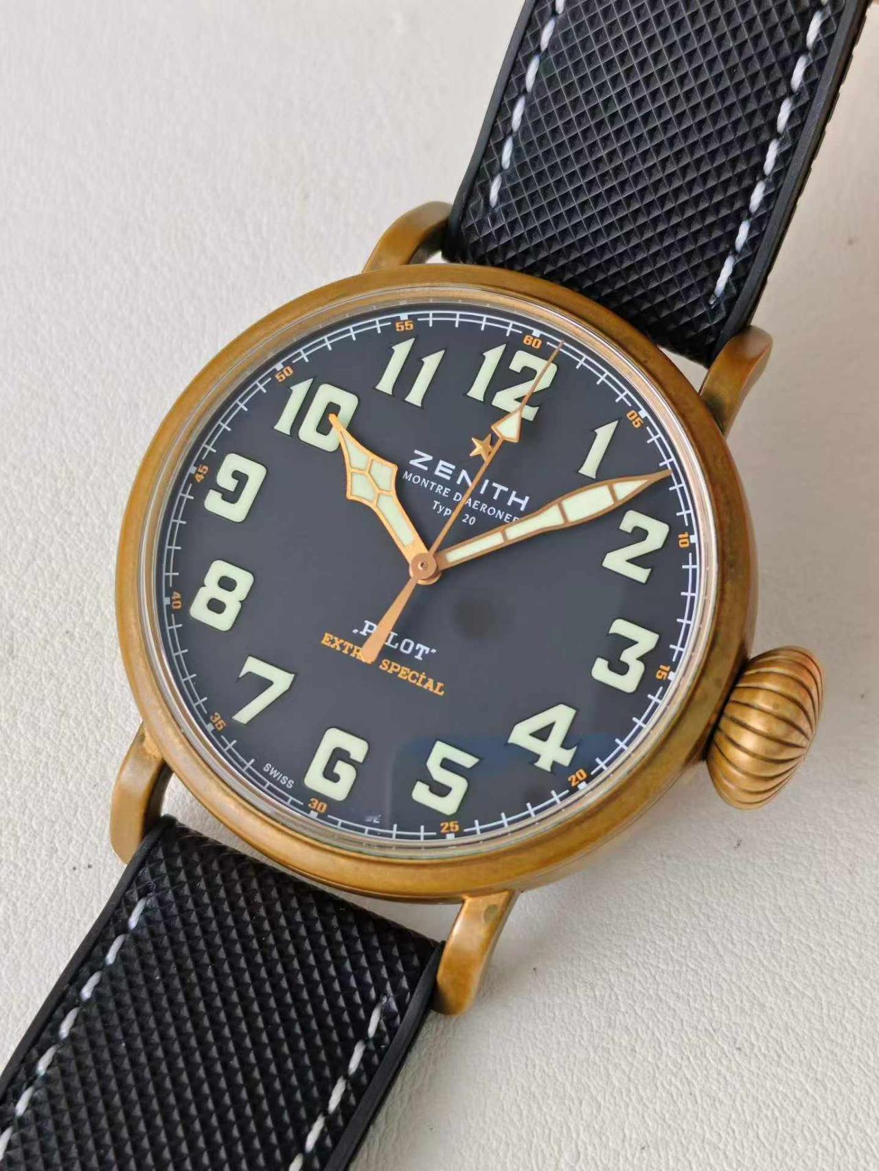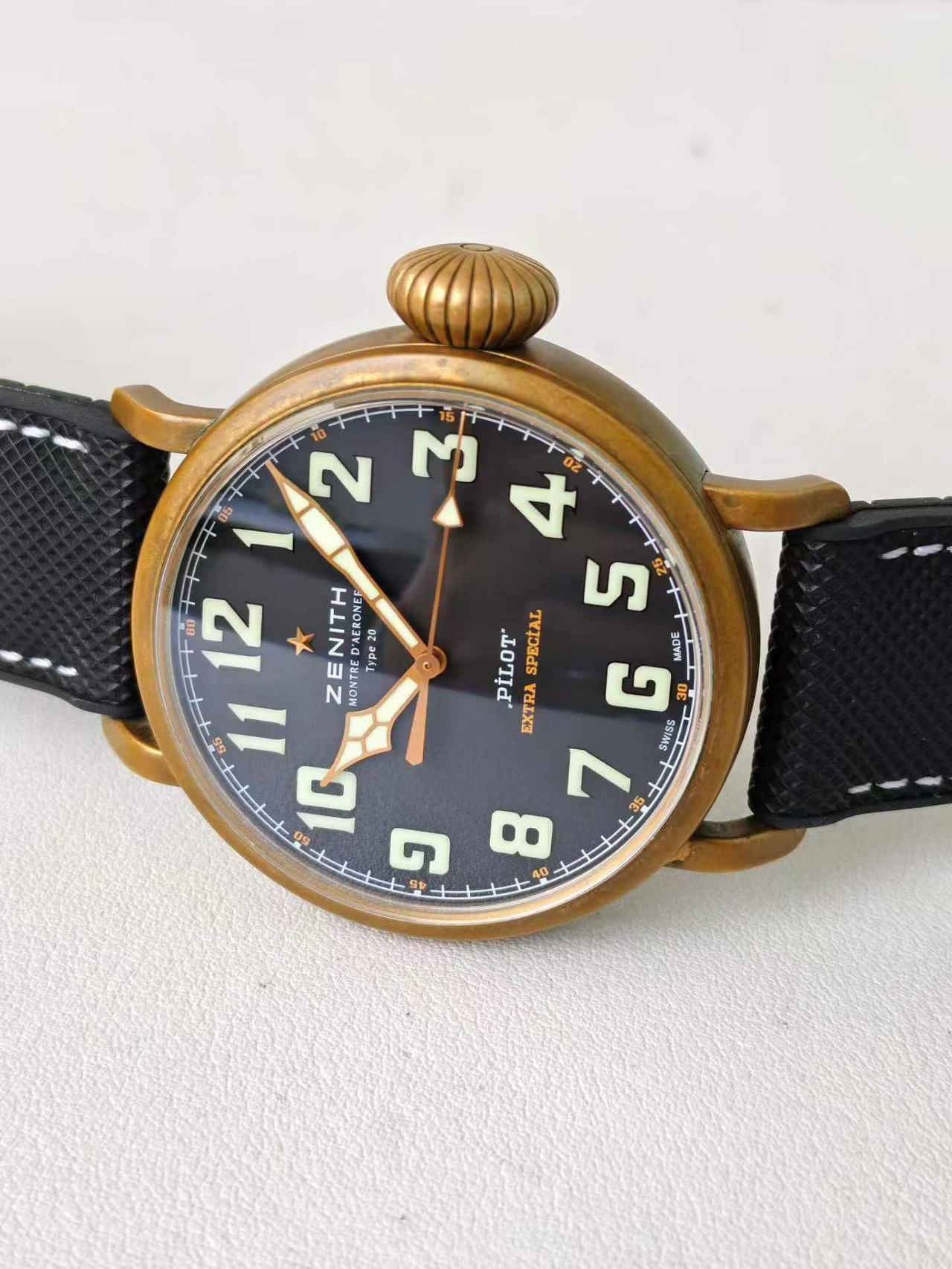 【硬汉能不爱 飞行员腕表?】硬朗的飞行员腕表,才是男人腕间的魅力天花板,真力时大飞系列,第一眼看给人的就是粗犷,有味道,且颜值极高,代表的是百年航空军表的浪漫,戴在手上有一种极强的复古风格,并且一看就是有故事的男人,深沉,厚重,有底蕴,洋葱把头具备独特的辨识度,曾经飞行员只有45毫米尺寸,如今有小尺寸40毫米,可以适应更多小腕维的表友,真力时的大飞行员,在腕表圈特立独行,有自己独特的味道,无可代替,您是否喜欢这种粗狂型腕表?请留言和表友讨论。二手腕表真力时