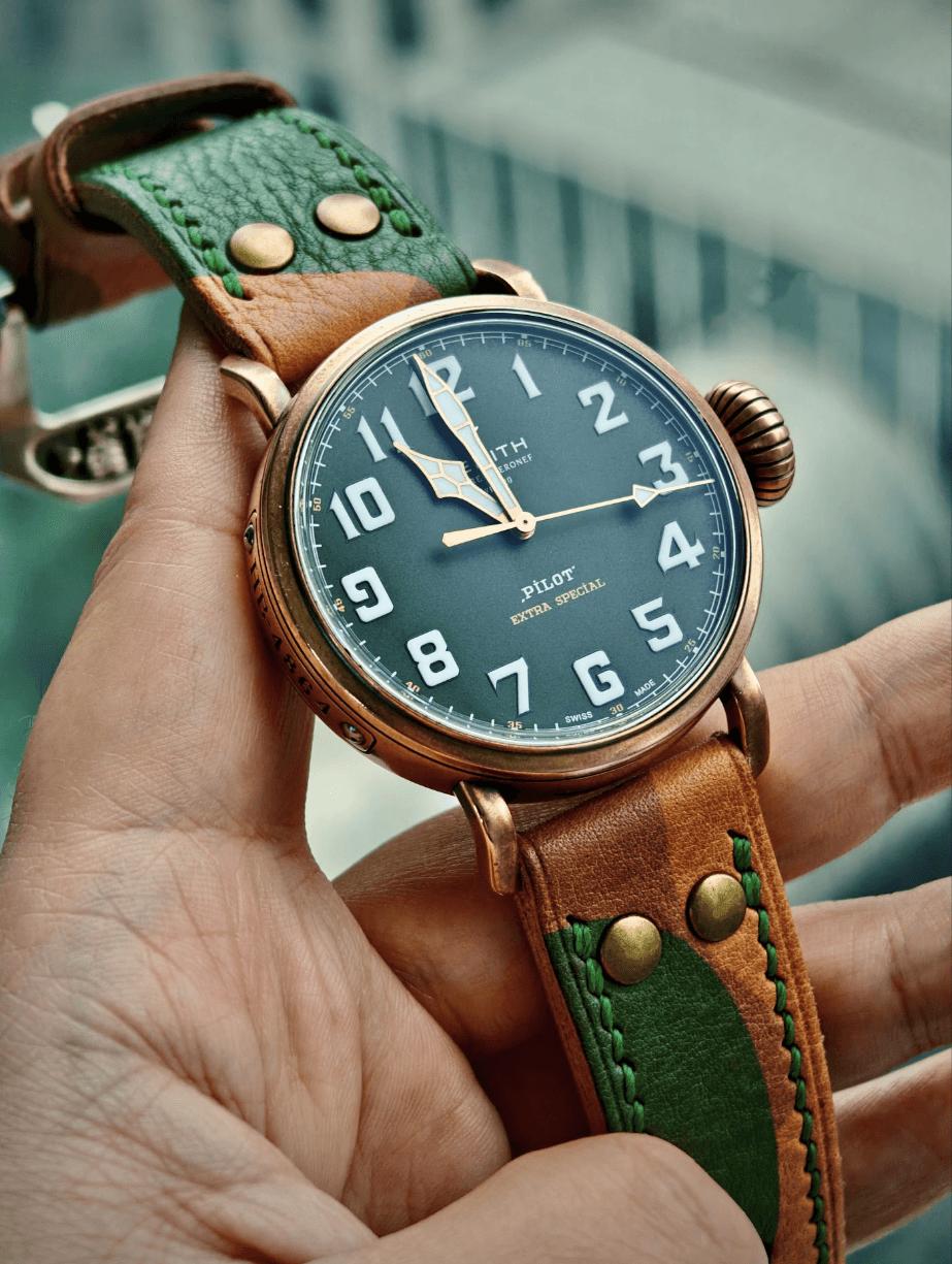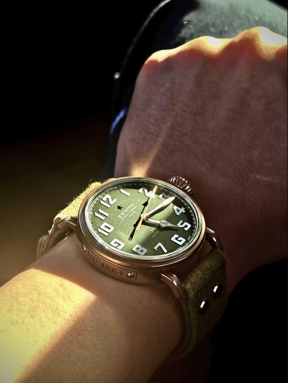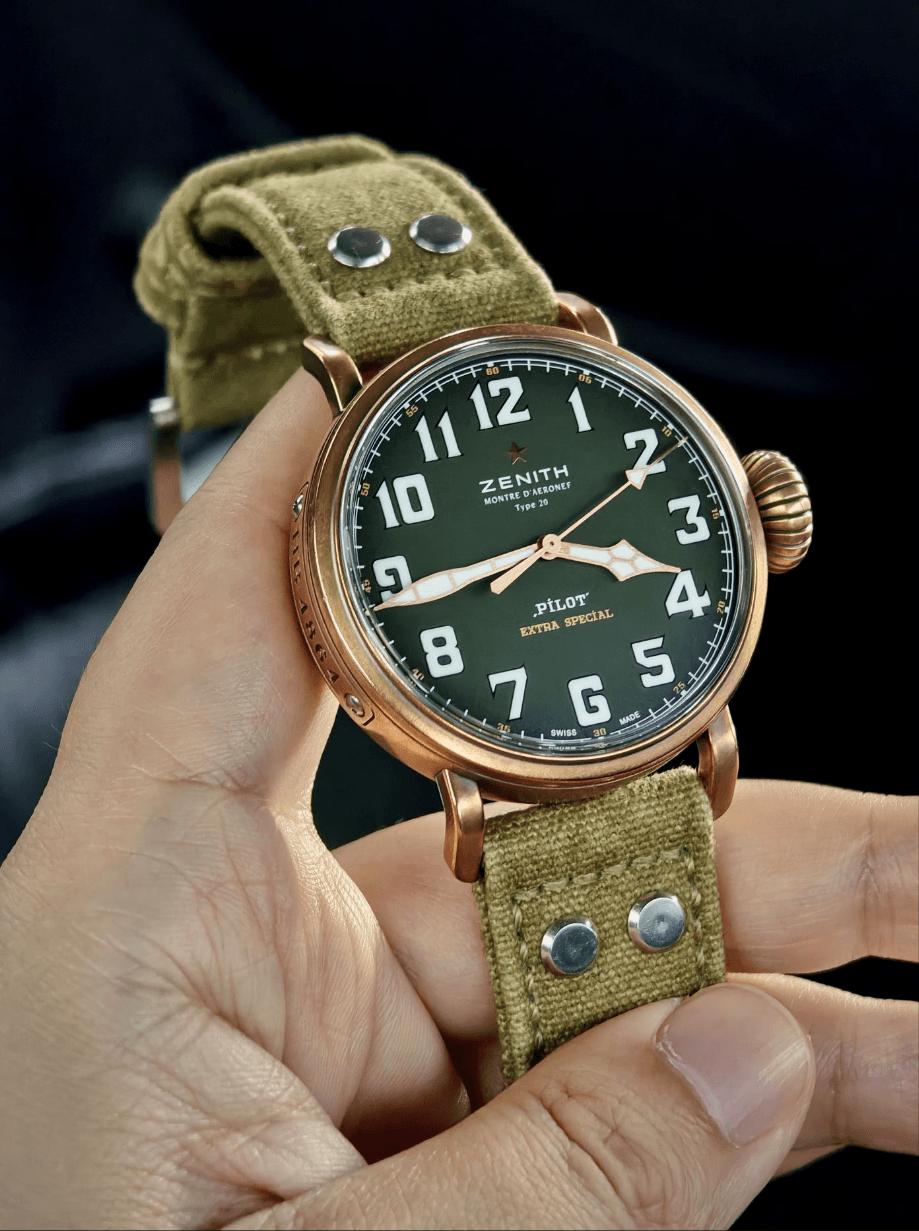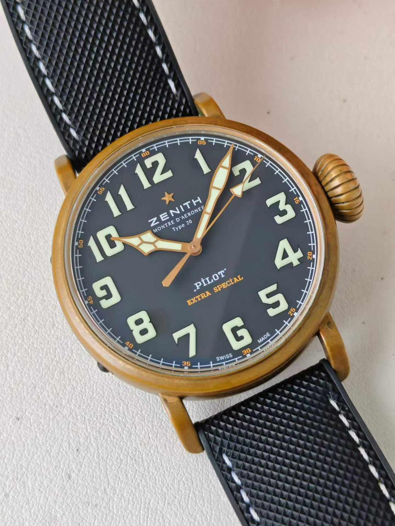 【硬汉能不爱 飞行员腕表?】硬朗的飞行员腕表,才是男人腕间的魅力天花板,真力时大飞系列,第一眼看给人的就是粗犷,有味道,且颜值极高,代表的是百年航空军表的浪漫,戴在手上有一种极强的复古风格,并且一看就是有故事的男人,深沉,厚重,有底蕴,洋葱把头具备独特的辨识度,曾经飞行员只有45毫米尺寸,如今有小尺寸40毫米,可以适应更多小腕维的表友,真力时的大飞行员,在腕表圈特立独行,有自己独特的味道,无可代替,您是否喜欢这种粗狂型腕表?请留言和表友讨论。二手腕表真力时