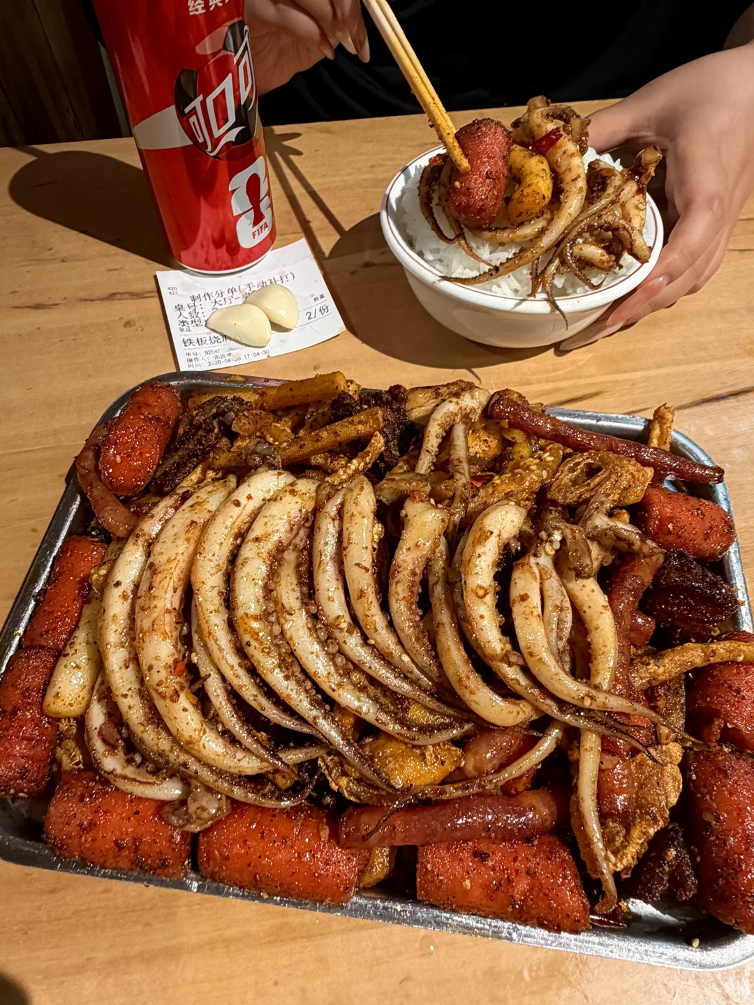 鱿鱼须裹满酱汁里面还有糯叽叽年糕~闻着就一整个香晕🤤