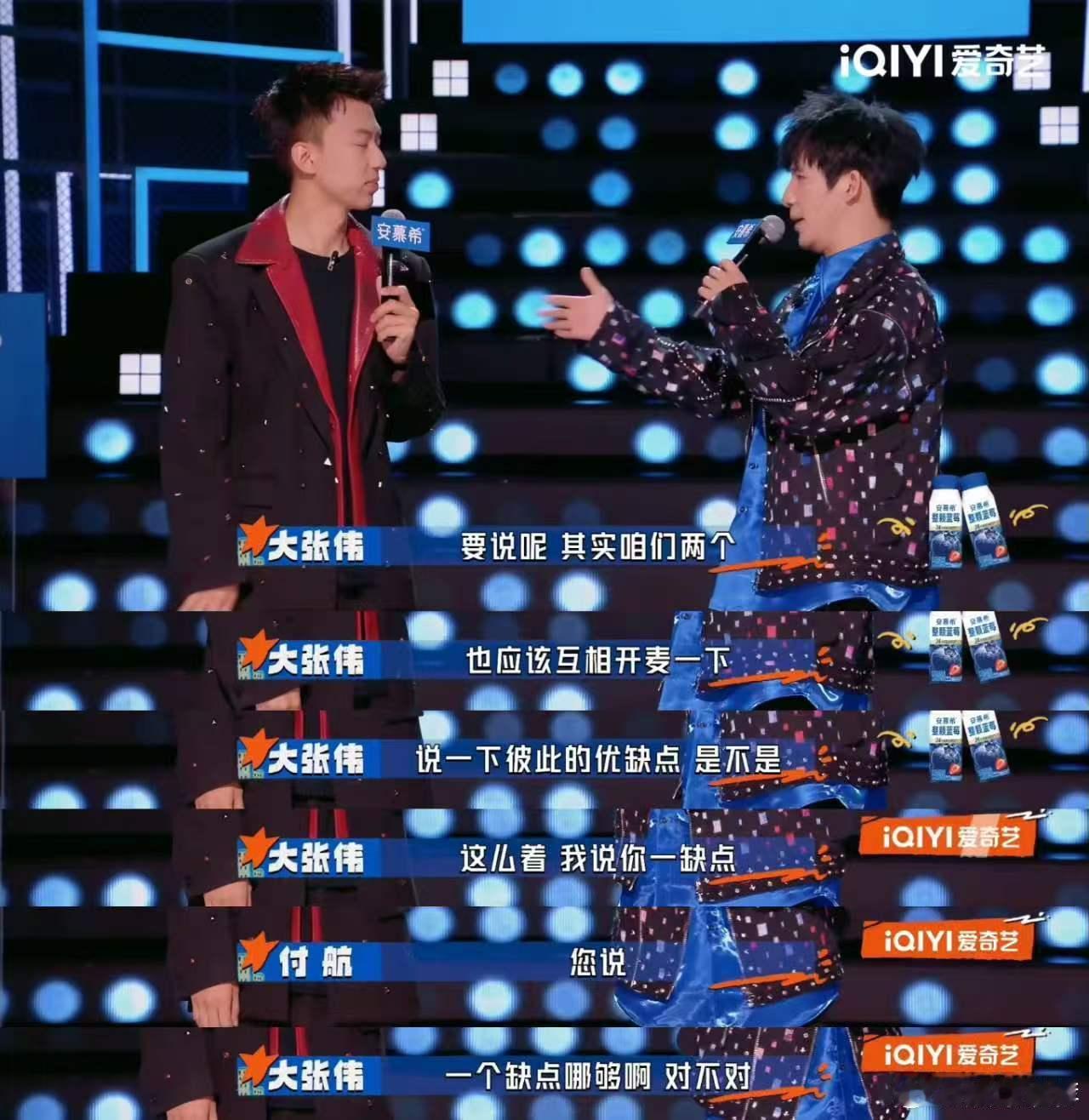 付航说大张伟是上个世纪出道的今夜喜友秀 付航是懂怎么“精 准打 击”的!大张伟铺