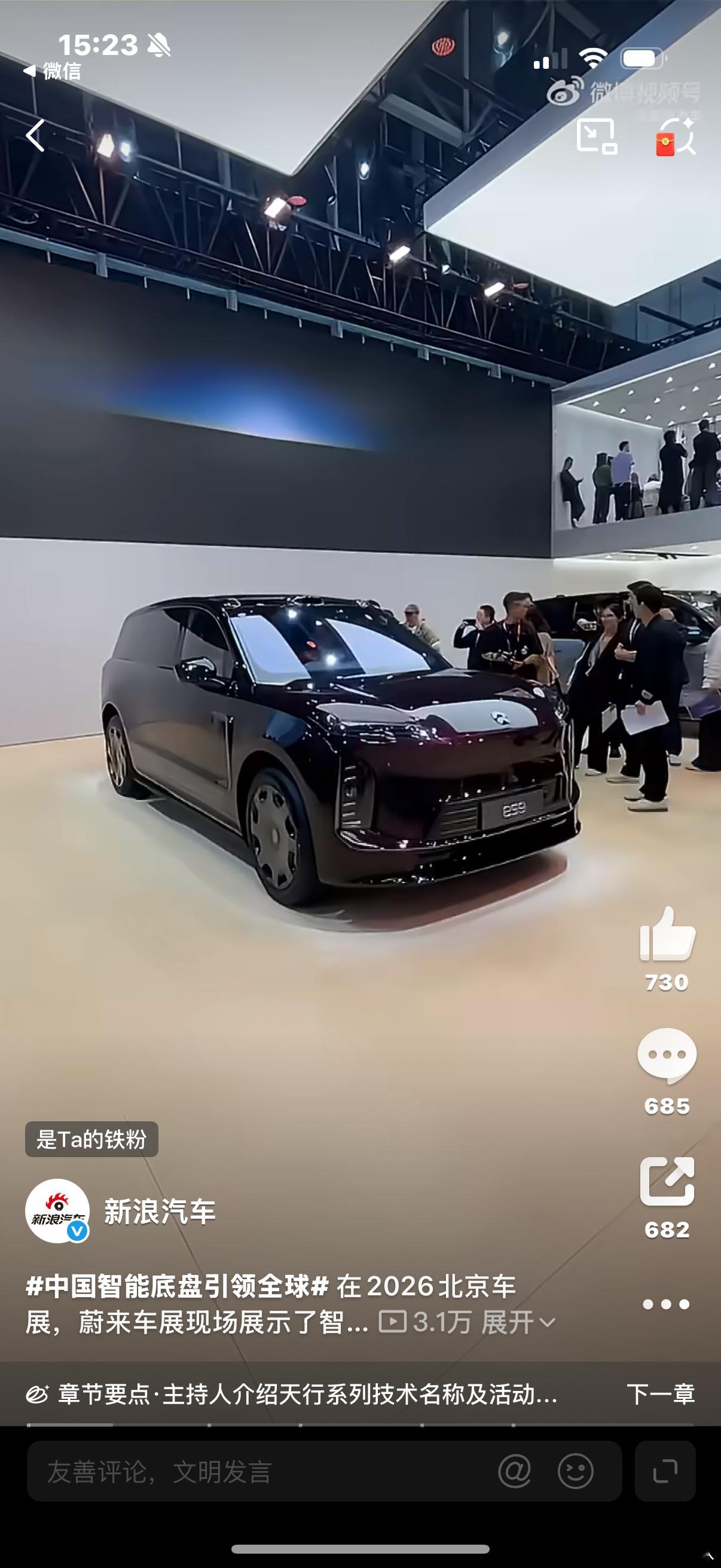 智驭无界:中国底盘的“代差”跨越从“跟随”到“定义”,蔚来天行底盘2026北京车展 的惊艳一跃,标志着全球汽车工业重心完成了跨时代的迁徙。中国智能底盘引领全球 技术维度的降维打击 以往底盘看欧洲,看的是机械调校的“老师傅手艺”;如今看中国,看的是感知、决策、执行的智慧闭环。天行底盘将线控转向与液压全主动悬架深度融合,彻底打破了传统机械底盘的物理极限。这不仅是零件的堆砌,更是AI算法对物理世界的解构,将“被动适应”升级为“毫秒级预判”。 标准重塑的战略高度 当我们在谈论领先时,不只是谈论驾乘的丝滑,更是谈论**话语权**。通过自研核心技术,中国企业正从标准的执行者蜕变为规则的制定者。这不仅重塑了旗舰SUV的性能标杆,更在“十五五”规划的蓝图下,为全球智能底盘的技术迭代贡献了“中国方案”。大v聊车 未来已至:汽车不再是冷冰冰的机械底盘加沙发,而是具备自我进化能力的智能有机体。这一步,我们走在了世界最前沿。北京车展寻宝攻略