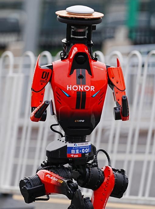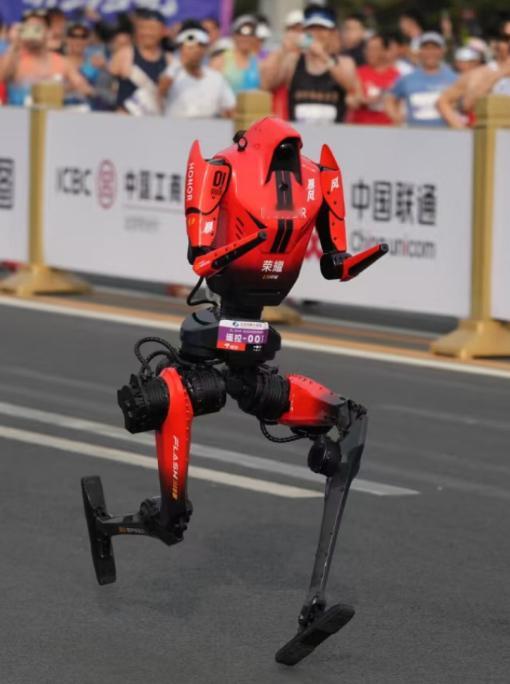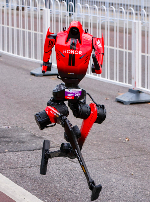 荣耀机器人“闪电”以48分19秒的净成绩,首次亮相即夺冠,较人类半马世界纪录57