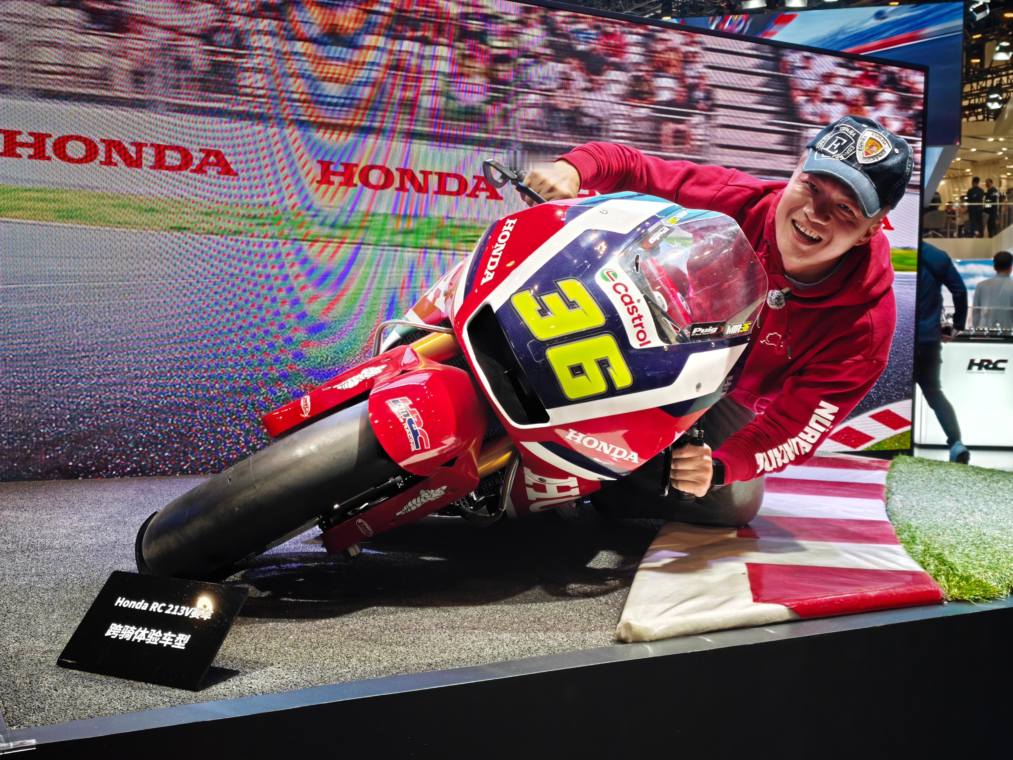 本田展台也太好玩了,光是坐进F1赛车,摆拍摩托GP压弯就很梦幻。