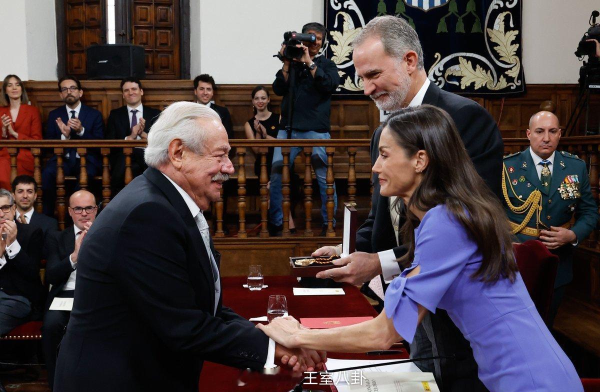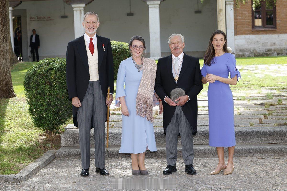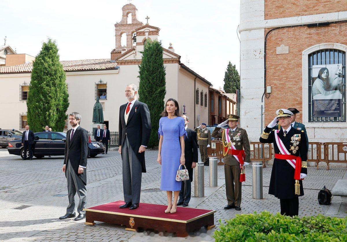 4.23 西班牙国王菲利普六世和王后莱蒂齐亚出席塞万提斯奖颁奖礼,小莱裙子来自carolina herrera