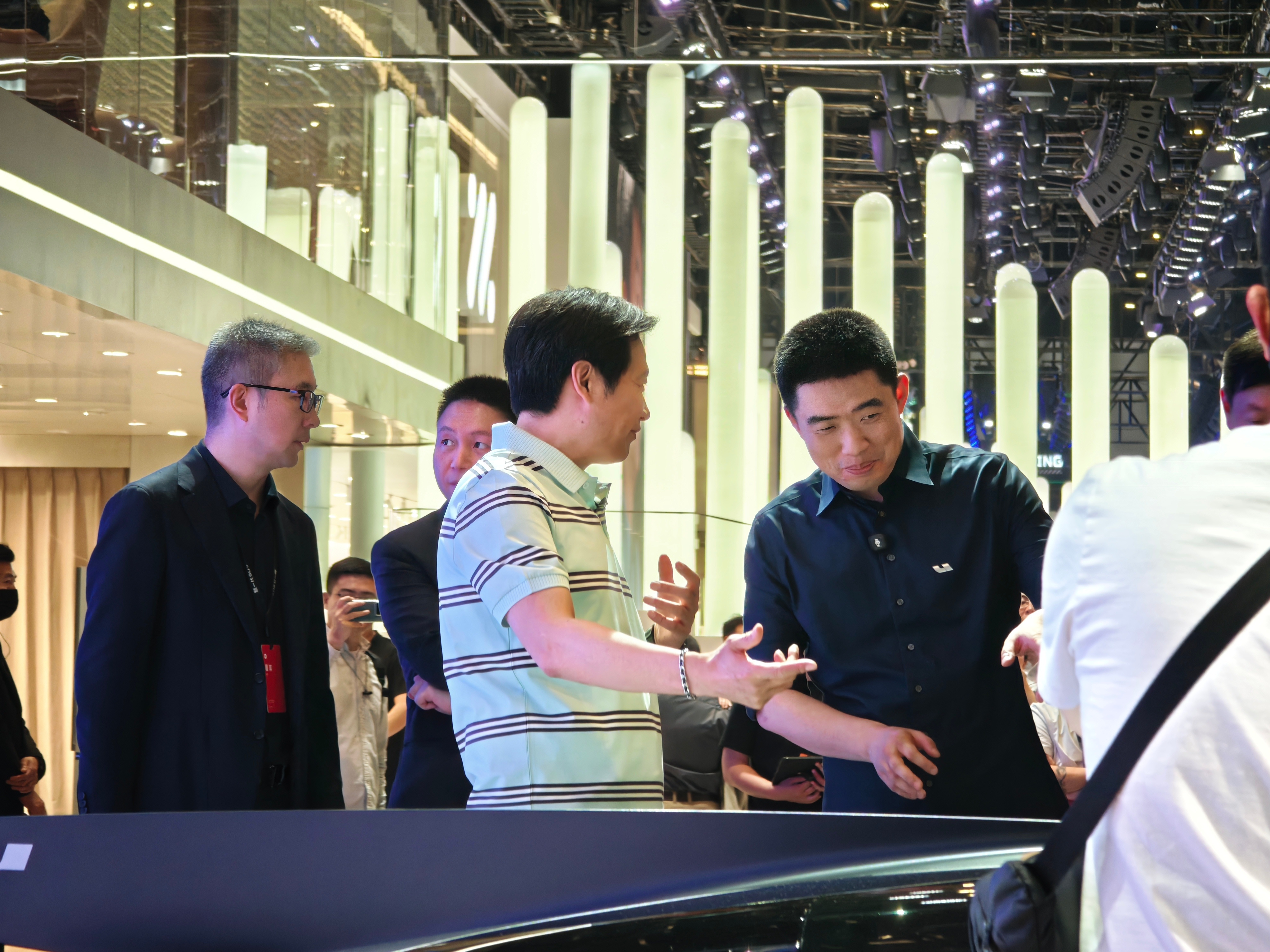 当时逛完理想去小米展台,还恰好赶上雷总带李想一起看小米概念车。围观了一会儿散了。