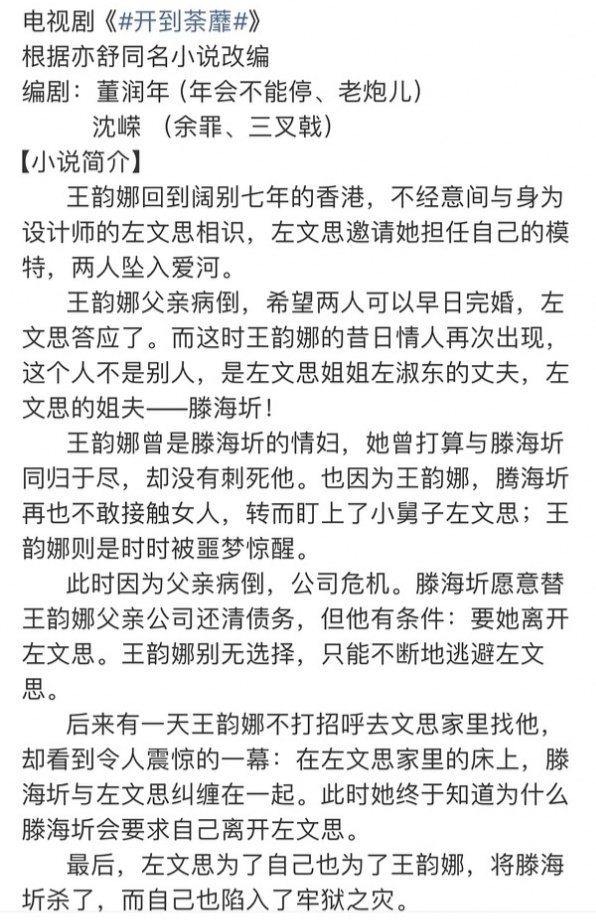 白鹿李昀锐开到荼靡开到荼蘼的剧情 白鹿李昀锐开到荼靡,开到荼蘼的剧情,本来亦舒小说改编算好饼的,期待住正式官宣的见面吧~