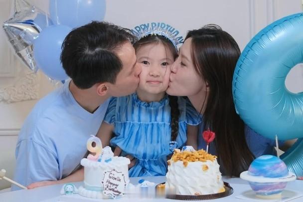 歌手吳若希(Jinny)與圈外老公Alex雖然經常耍花槍在網上「開火」,但夫妻對仔女卻愛護有加,一家四口相當幸福。近日Jinny為大女Giselle慶祝9歲生日,夫妻齊齊鍚女兒,Giselle試圖阻擋爸爸鍚鍚,但最後雖然面露無奈表示,但也只好就範,相當搞笑。
