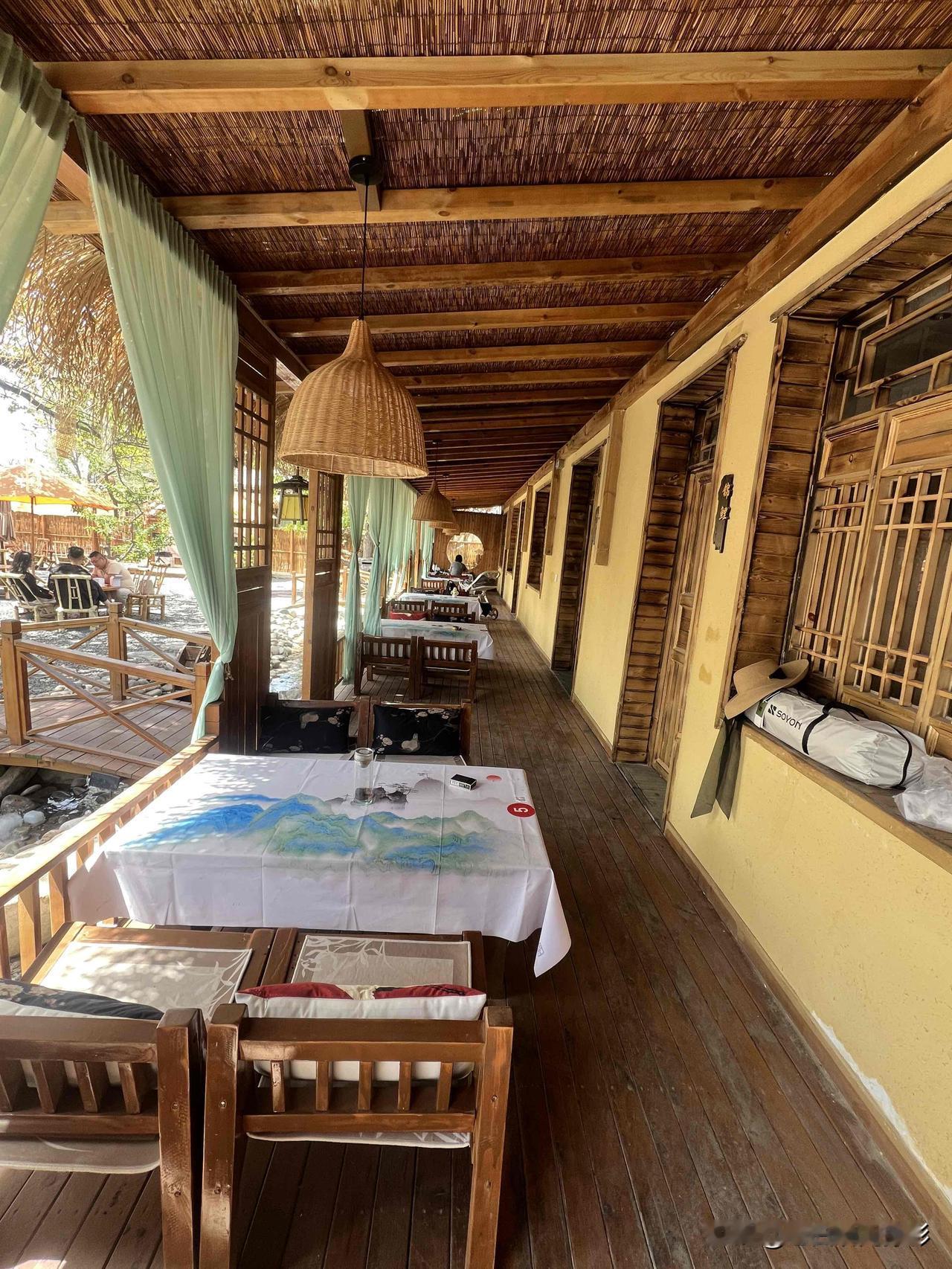 越往北走越晒,没多久便到了一处农家大院。看这环境确实不错,便进去坐下问询,从中得知,一杯三泡台茶水26元,也算合理。午餐已用过,便没再点餐。