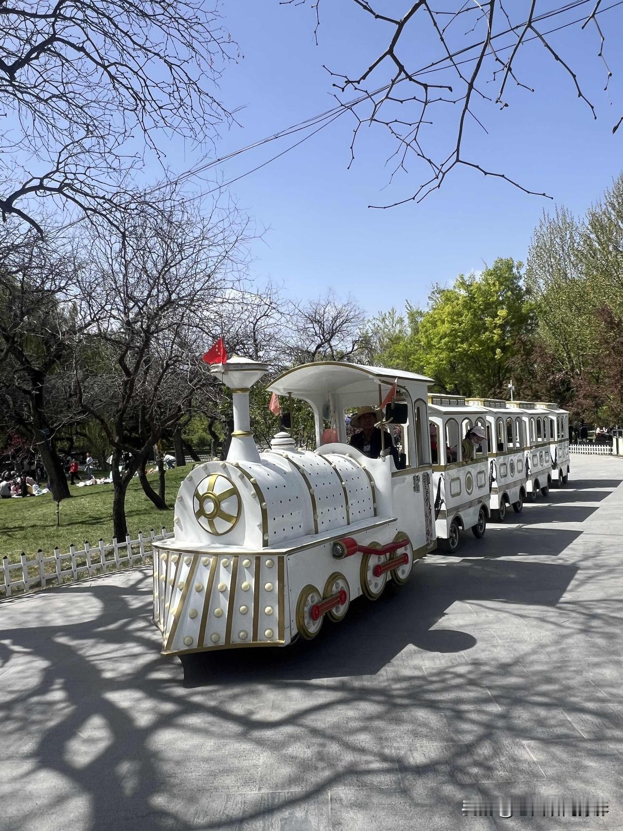 我和妻子许久没来此地了。公园里绿色植物众多,只是枣树依旧未变绿,其余五颜六色的花依次盛开,吸引了一拨又一拨的游客。
