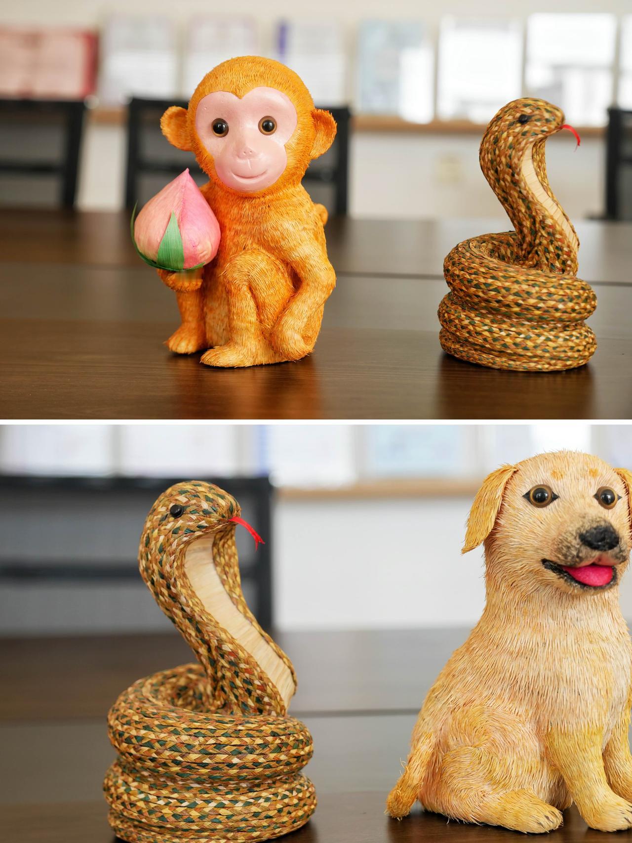 ✅剁手:玉米叶编制的收纳筐和十二生肖摆件。这不仅是一个篮子,这是翼城大妈指缝间的非遗智慧,摆在家里极有格调。