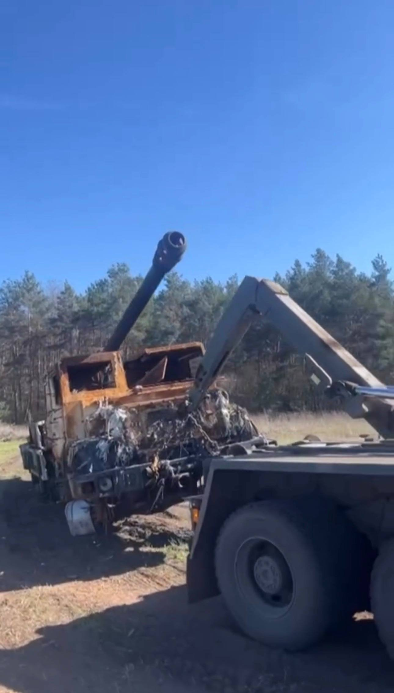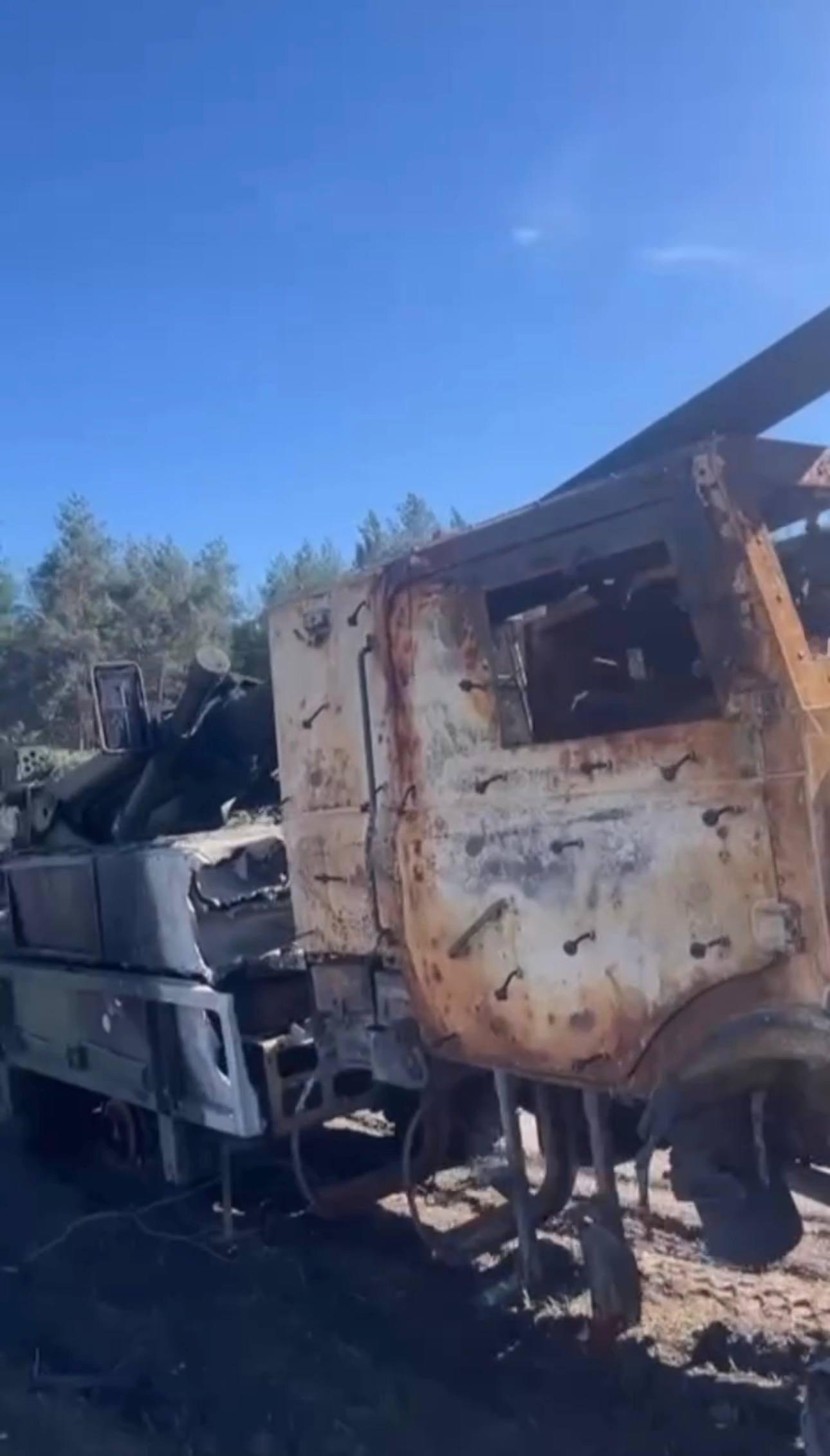 乌军被击毁的凯撒车载加榴炮
