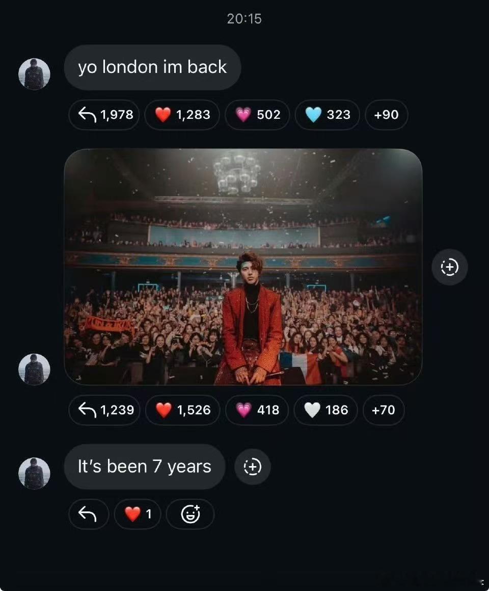 蔡徐坤时隔七年再巡回到伦敦七年岁月流转重返伦敦主场,故地重逢宿命感狠狠拉满,始终专注热爱坚守音乐本心,一路沉淀一路发光,时光不负坚持,双向奔赴永远动人