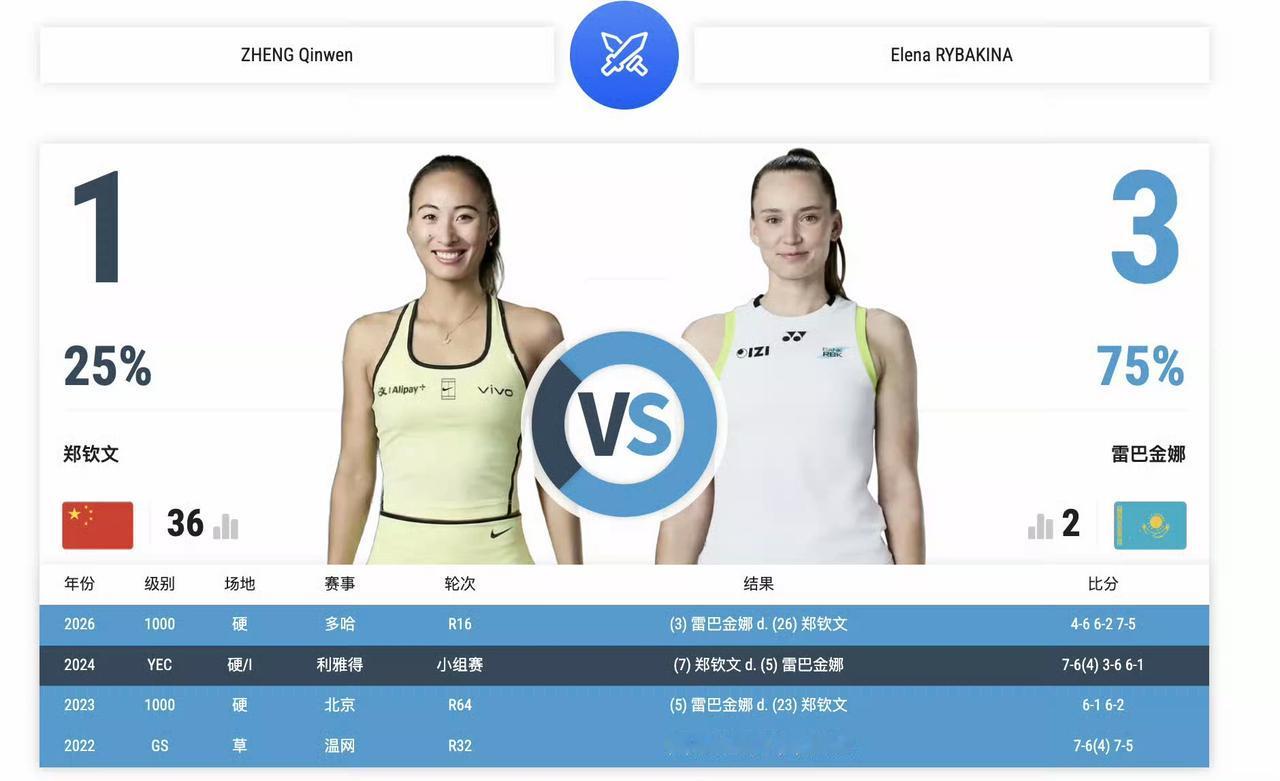 郑钦文签运太差了!马德里赛第三轮又要遭遇世界第二莱巴金娜。 命运的签表又把她俩签