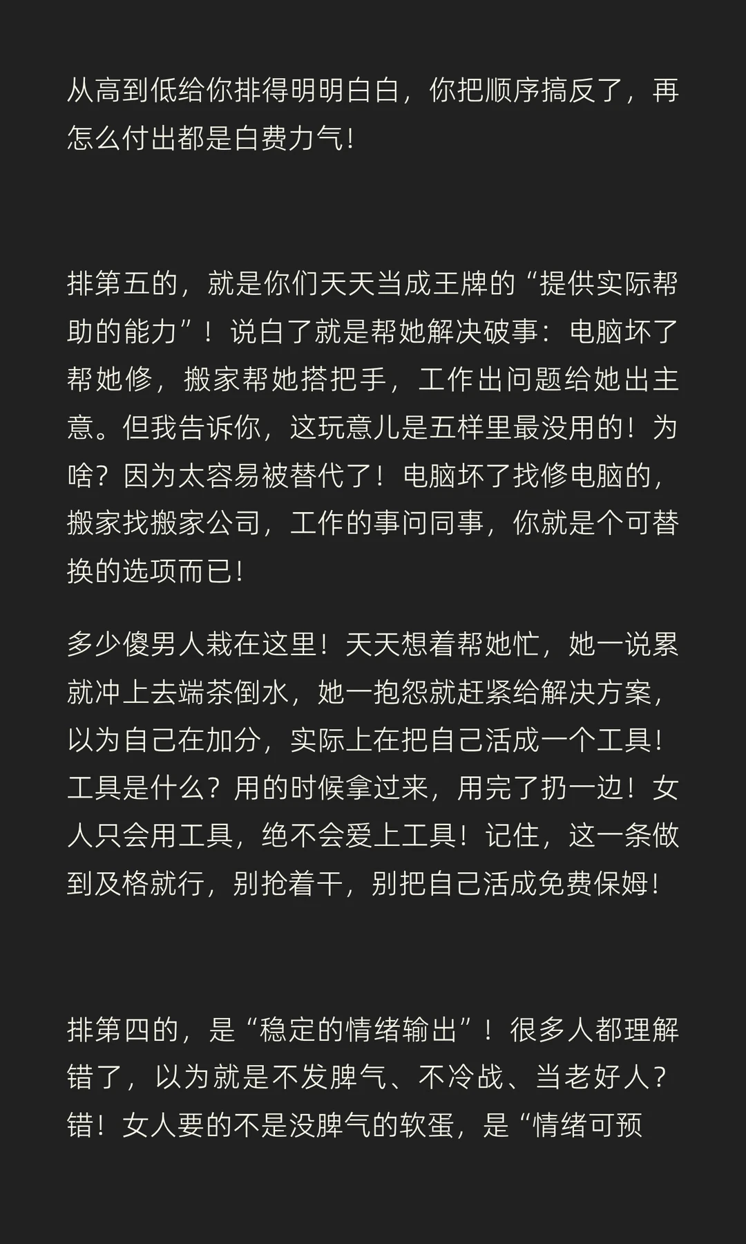 很现实的一段话:"有人说,关了灯,女人都一样。说实话,真的不一样。脸
