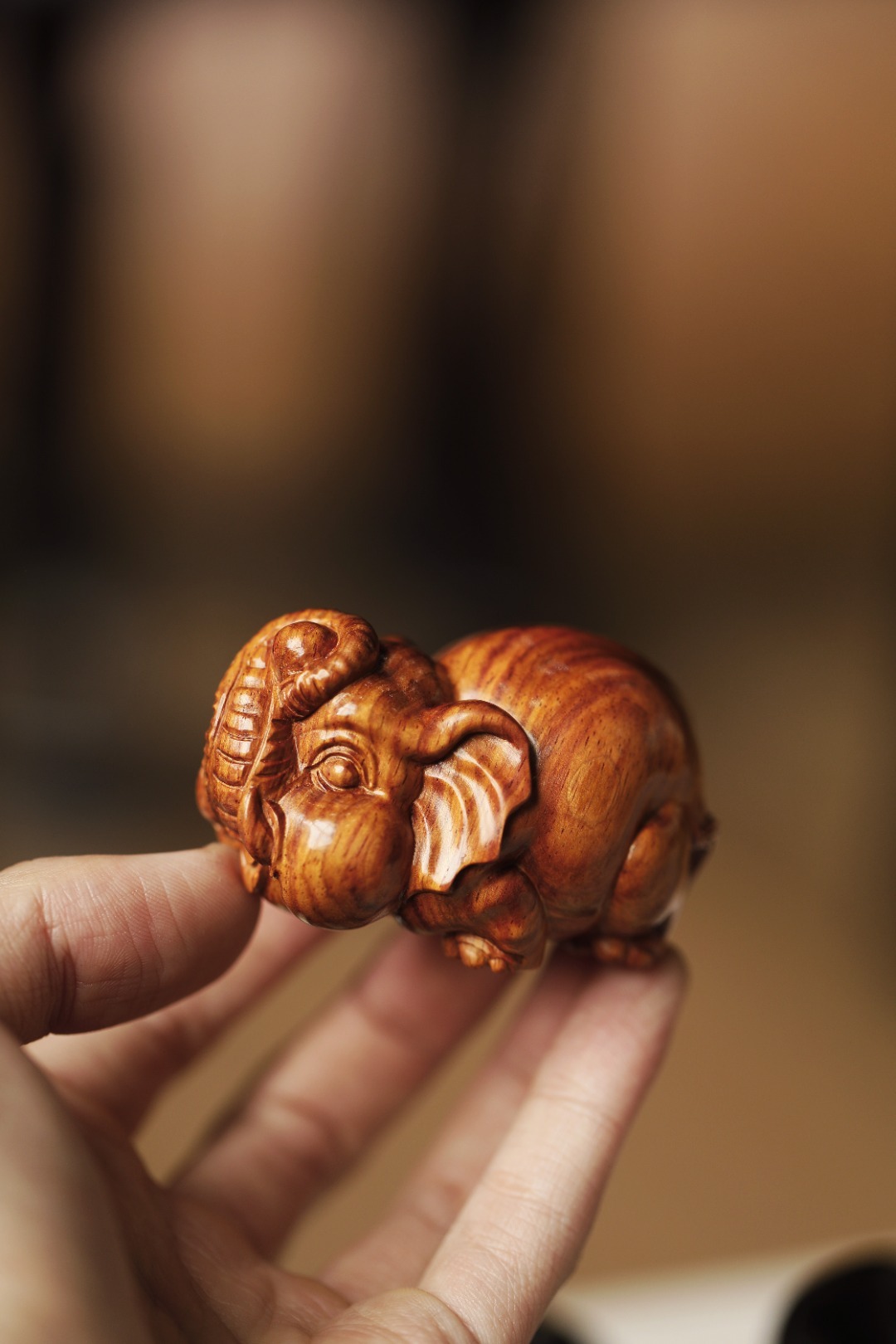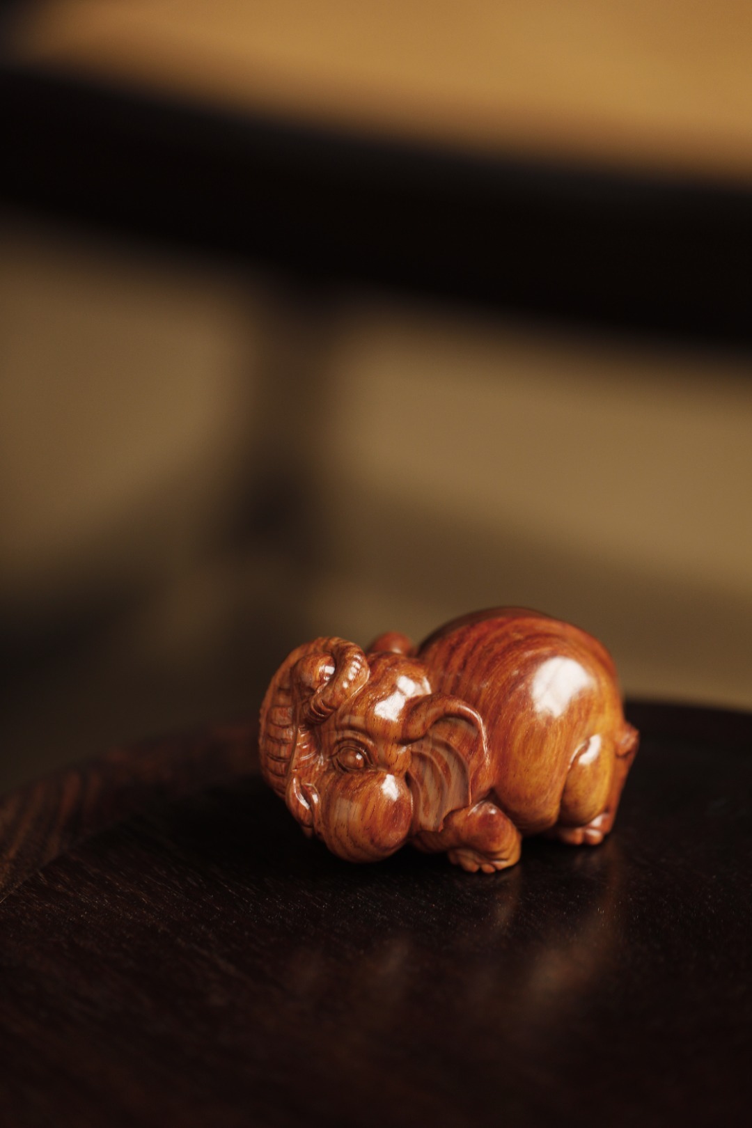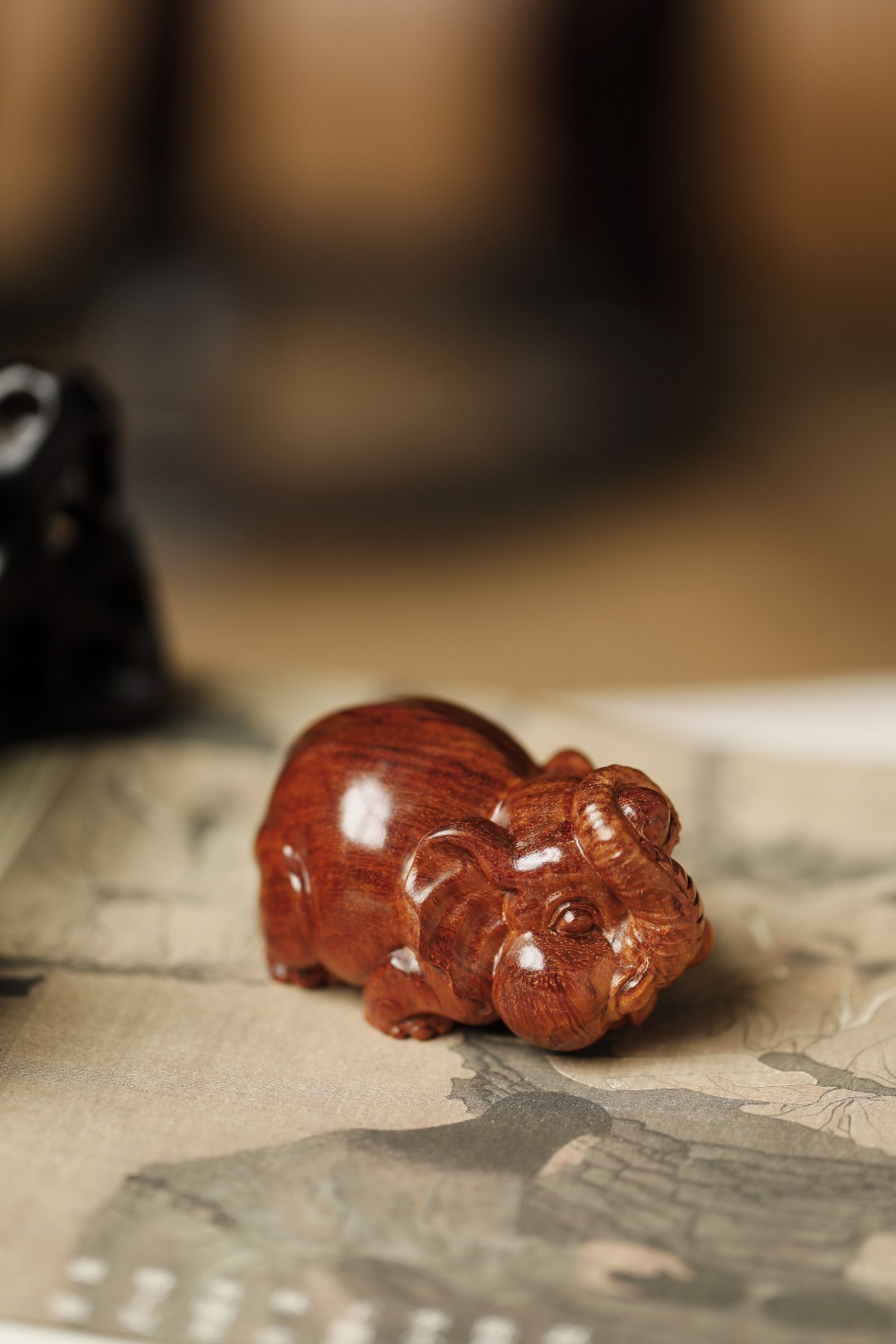 刀工精确、稳重,刻画出其生动的神情姿态,细致的线条和皮肤纹理,饱含着灵动的形体,憨态可掬,寓意吉祥如意。
