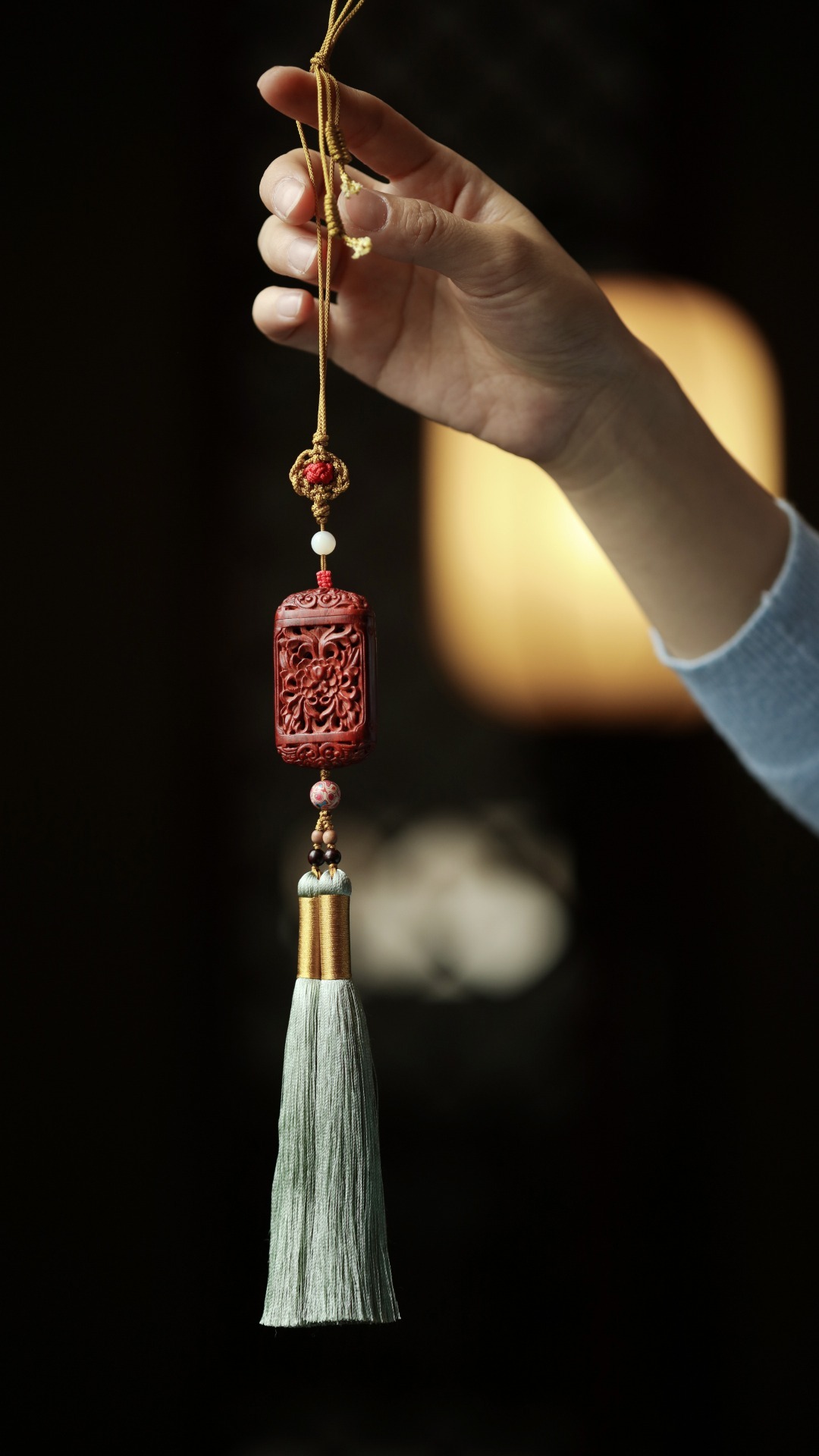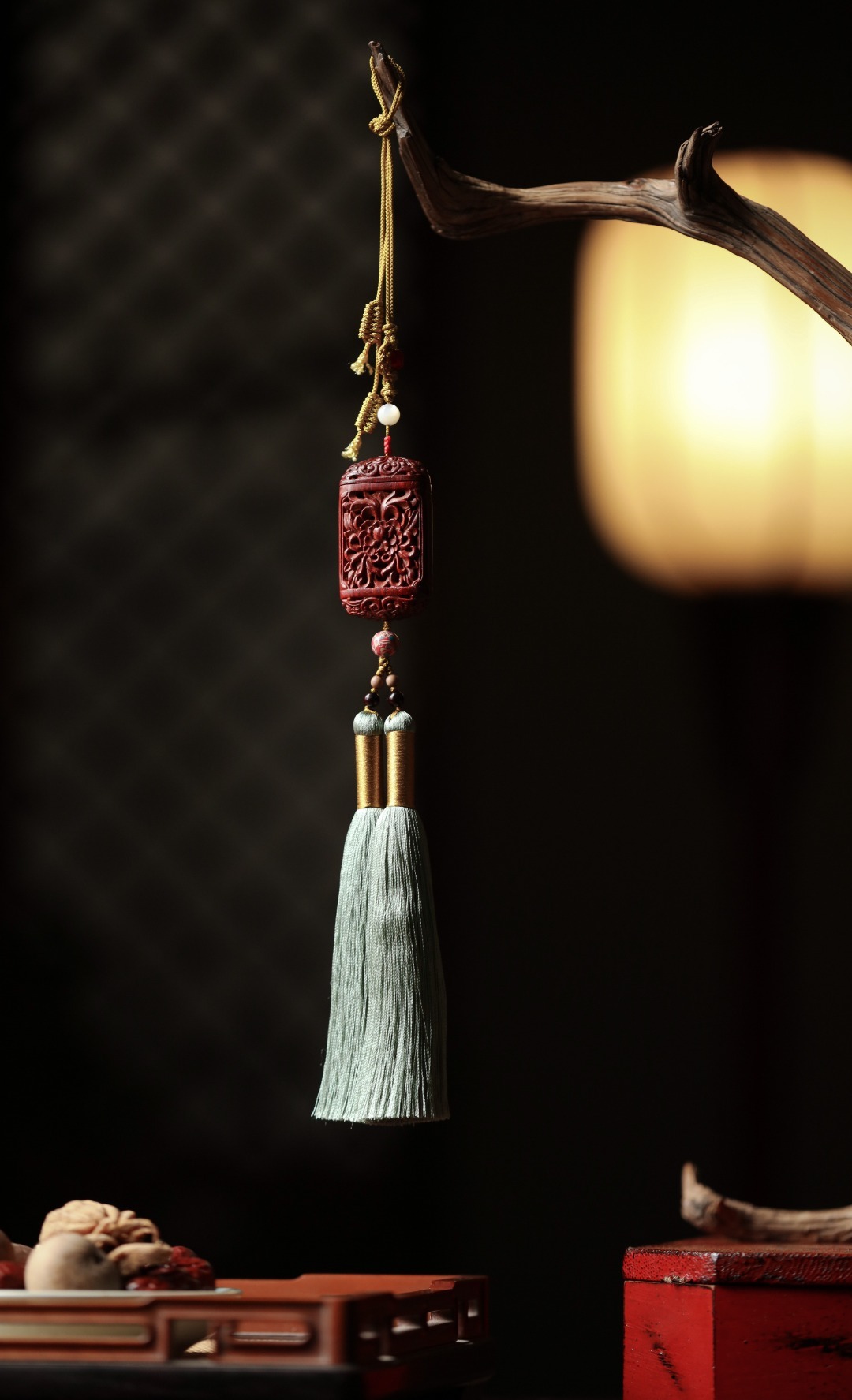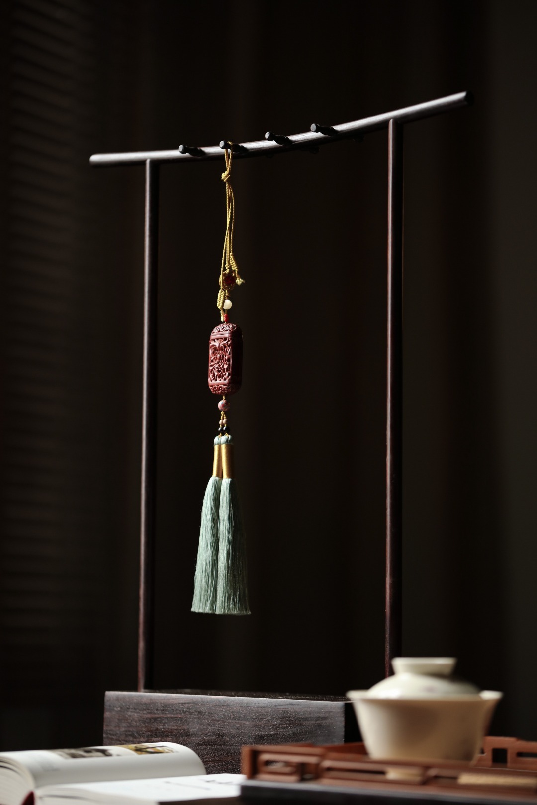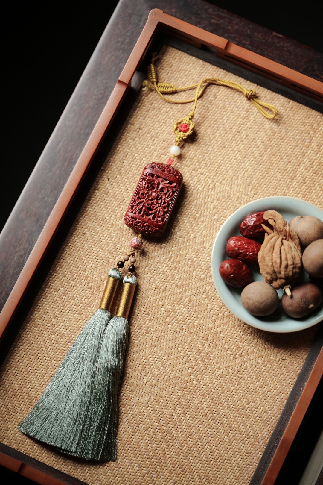 5.5*3.1.5cm 全长约46cm 小叶紫檀 | 宝相花·香囊 挂件
