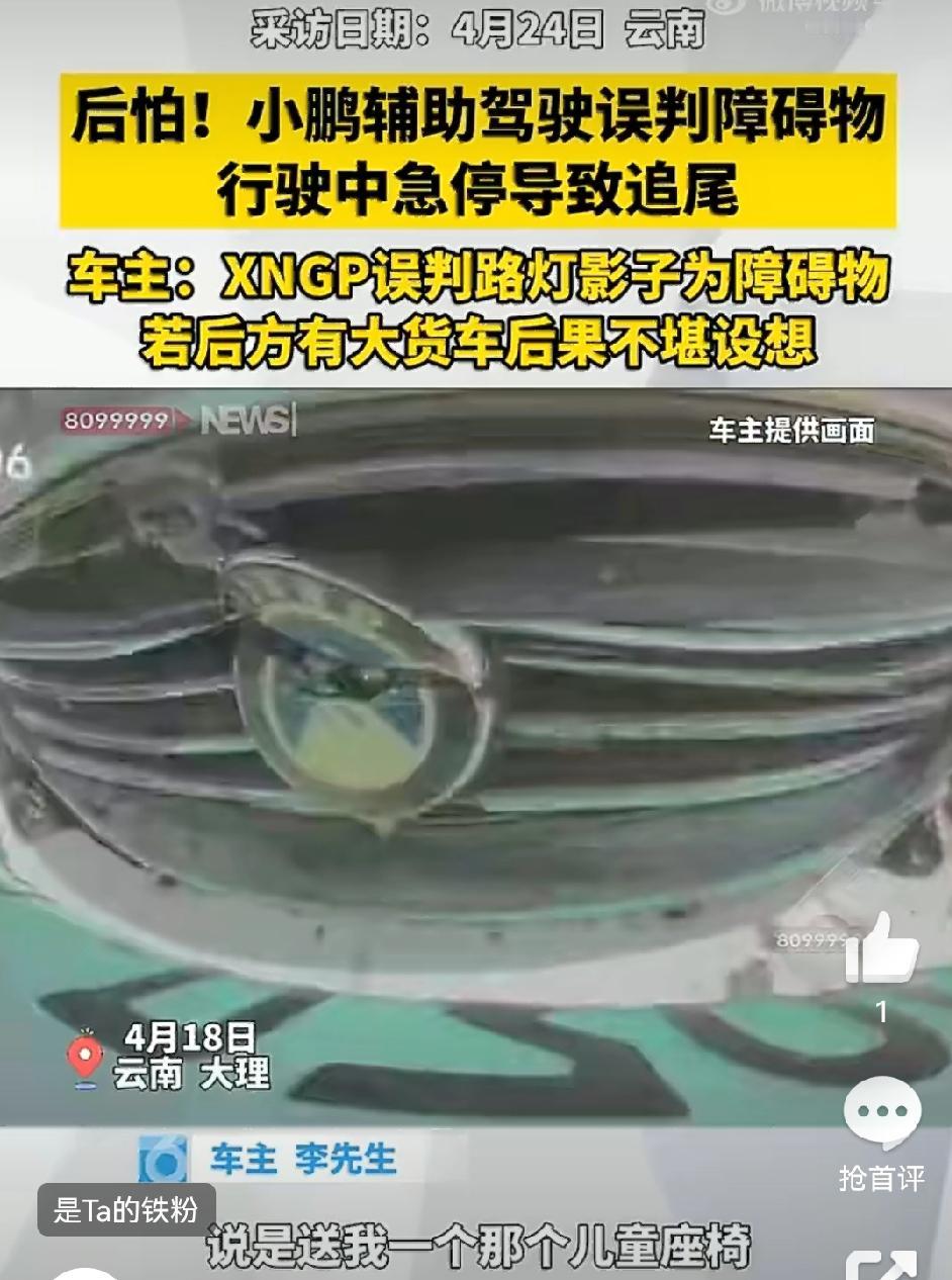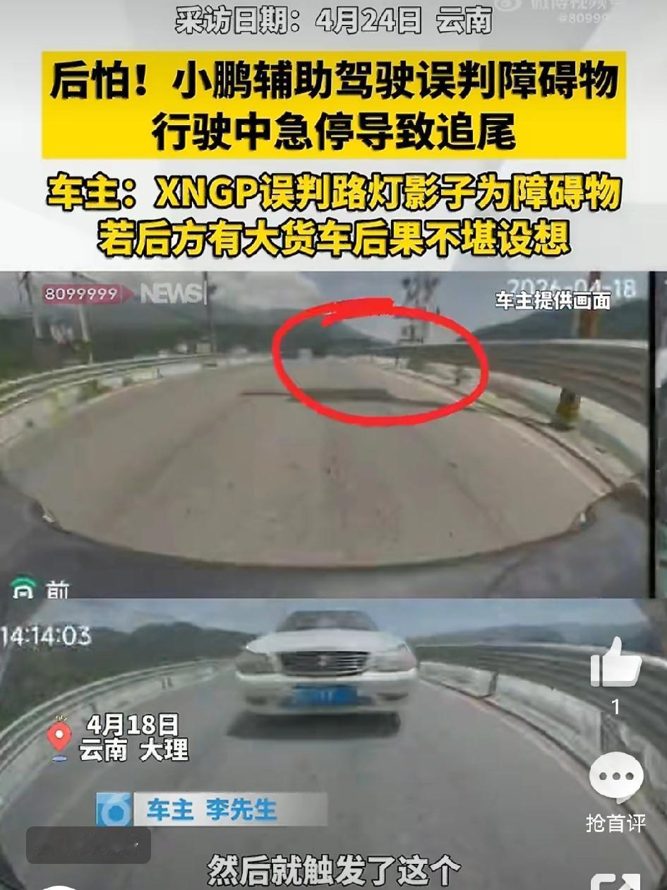 📍❗️小鹏辅助驾驶又出状况了!【小鹏辅助驾驶误判影子为障碍物急停致追尾】