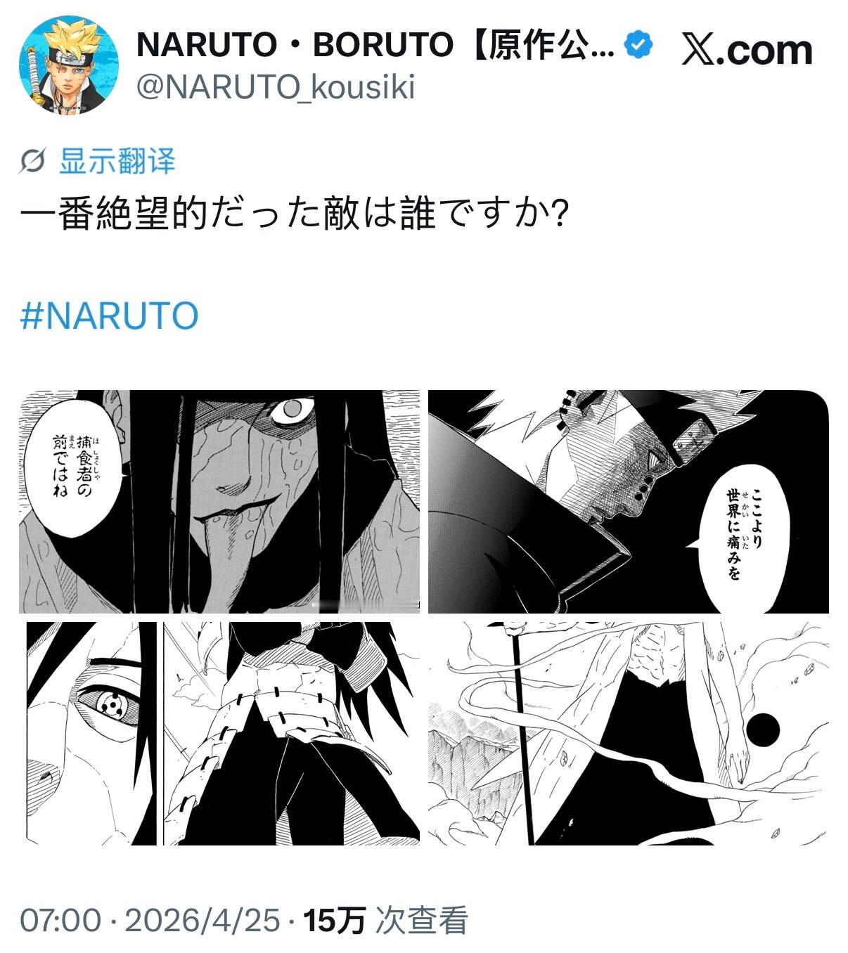 【火影忍者官方最新发布了推文】最令人绝望的敌人是谁?火影忍者