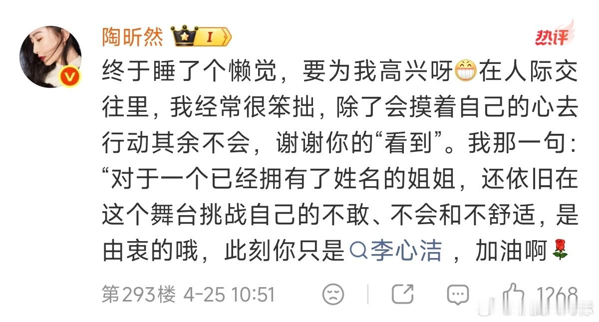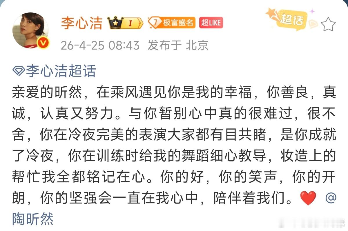 李心洁发文送别陶昕然陶昕然回复李心洁要为我高兴呀 李心洁发文送别陶昕然:“你的好,你的笑声,你的开朗,你的坚强会一直在我心中,陪伴着我们。❤️