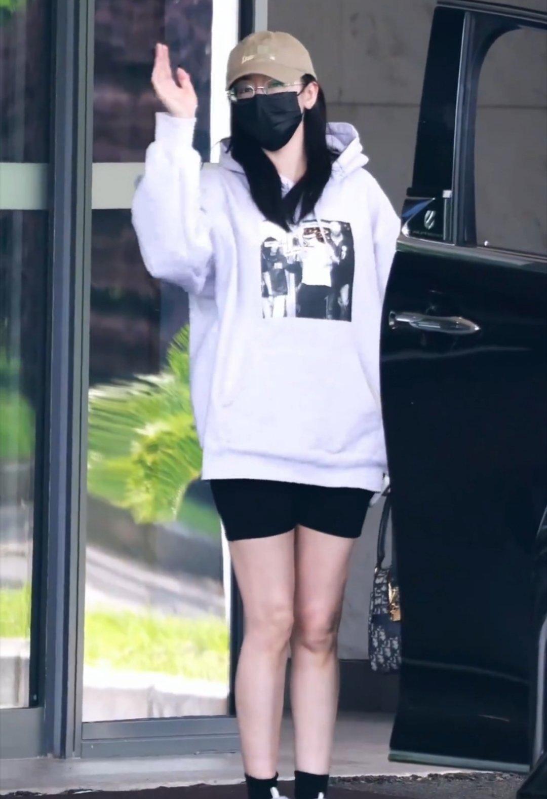 迪丽热巴腿部肌肉线条 迪丽热巴在机场外面公开露面,一双美腿又长又直又白,走动之间