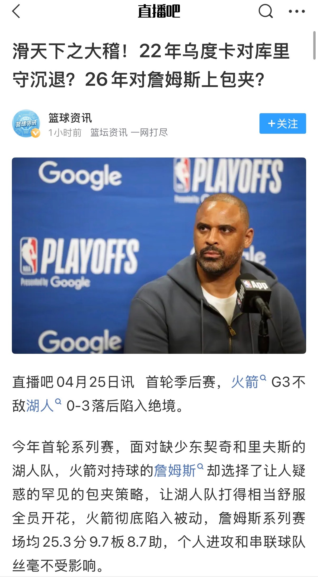 包夹詹姆斯,对库里守沉退………乌度卡神人