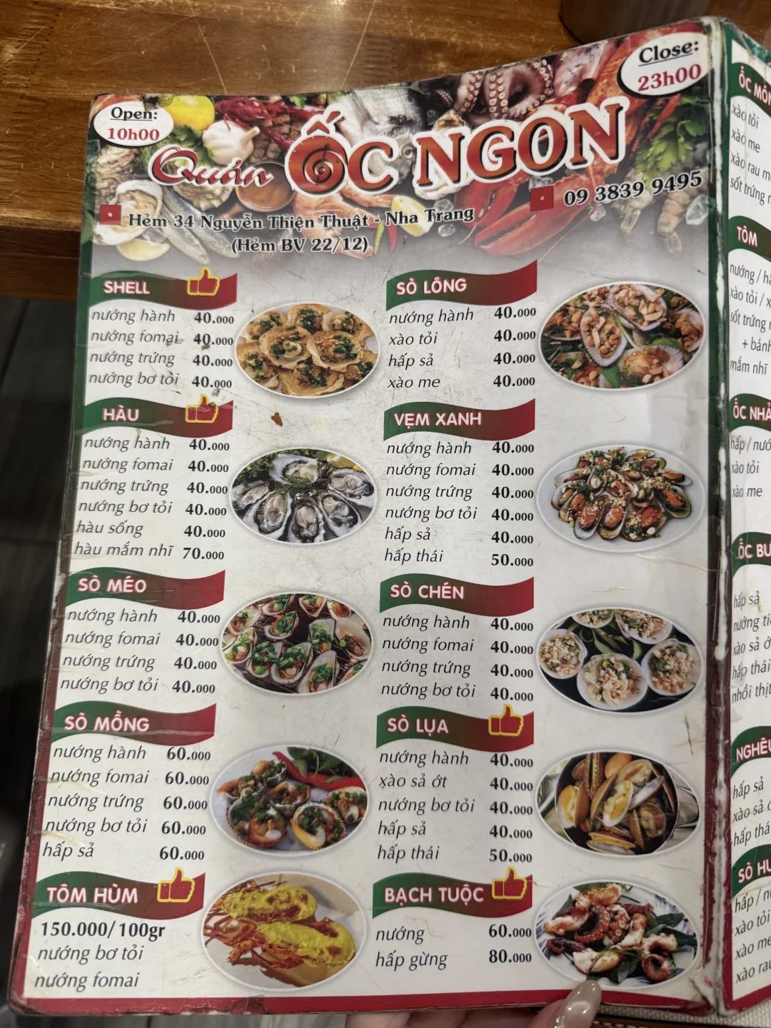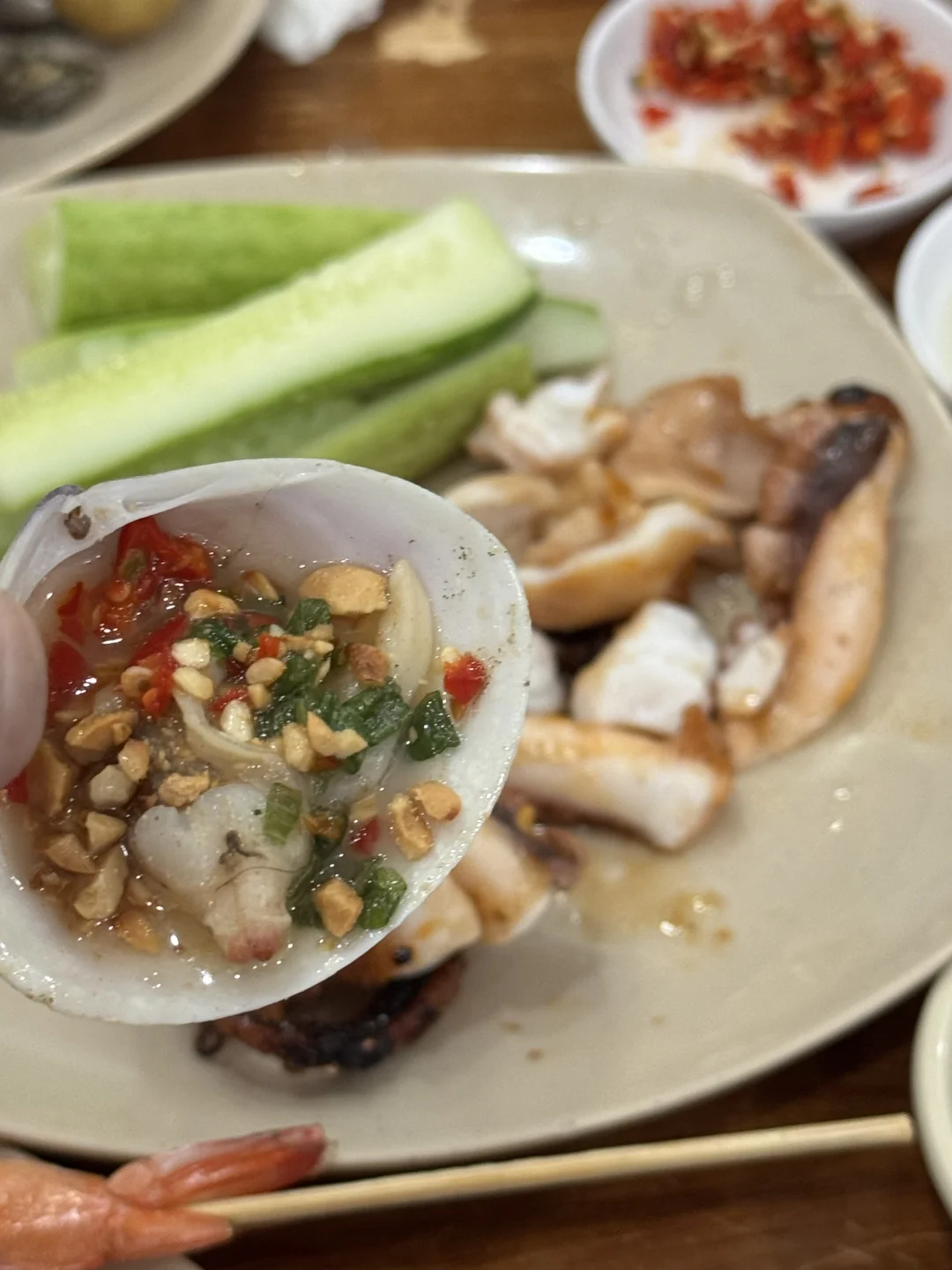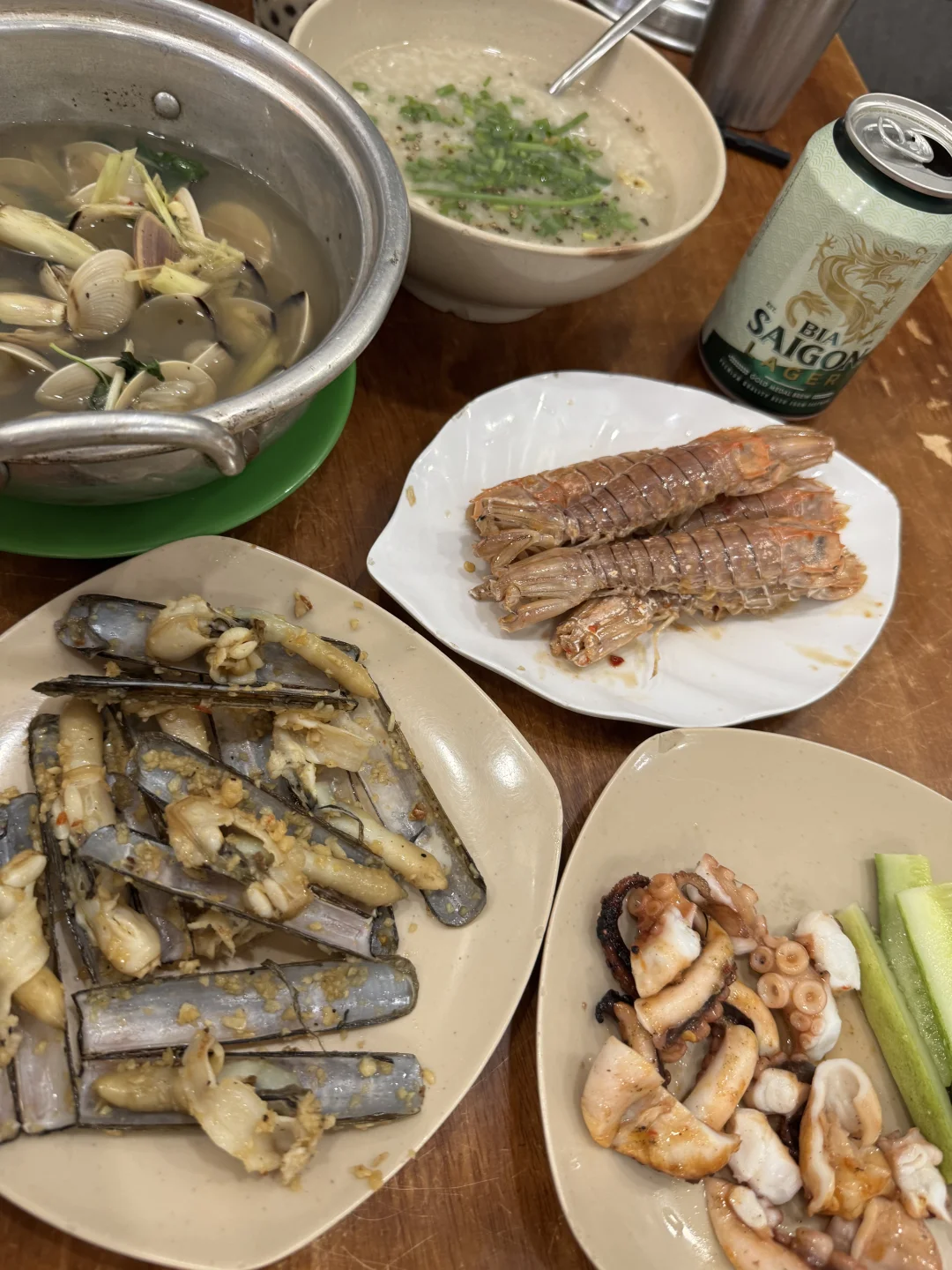口味和国内不太一样,但很有特色,放了花生碎的扇贝很特别。有越南特色的蘸料,老板会非常热心的告诉你怎么吃。除了海鲜,空心菜也不错。反正都很喜欢,搭配当地特产的啤酒,真的太快乐了!!