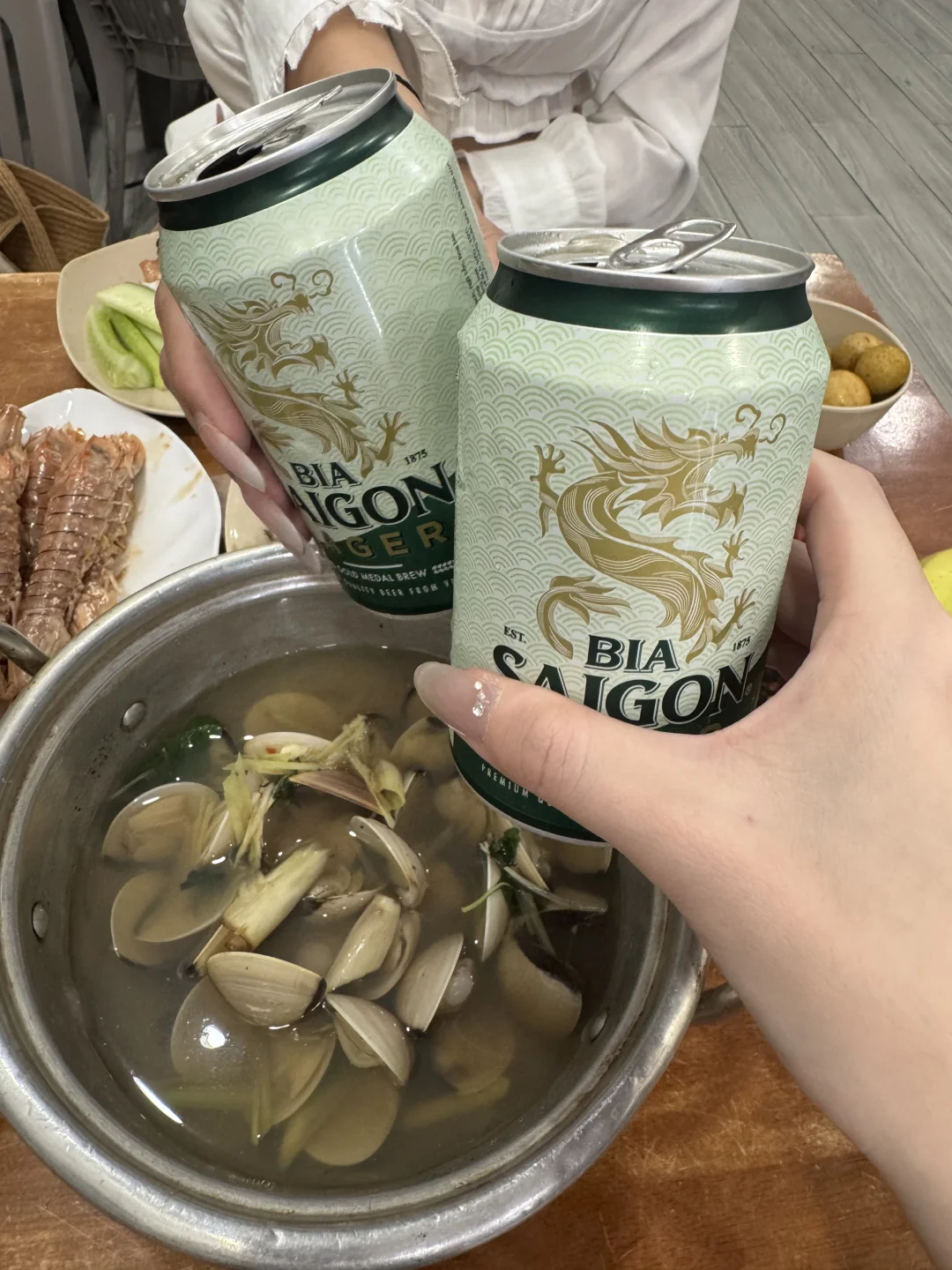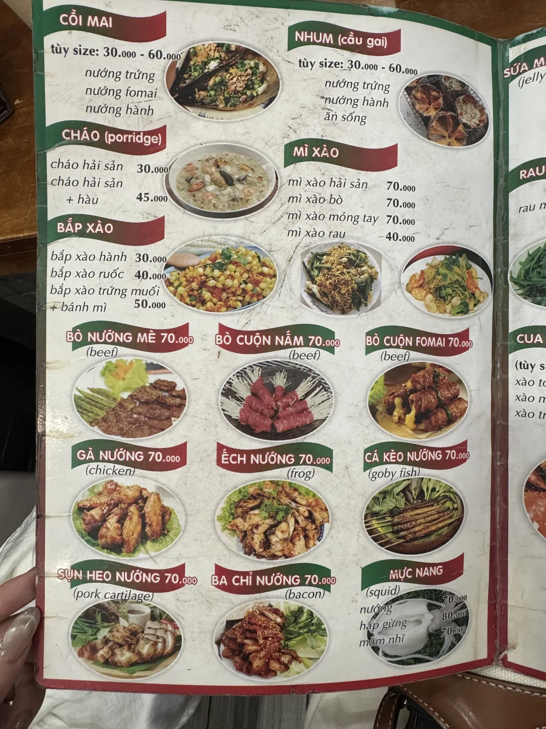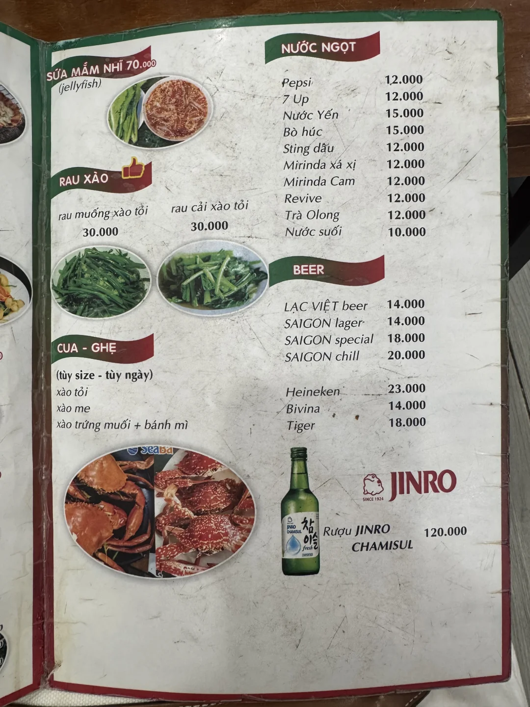 口味和国内不太一样,但很有特色,放了花生碎的扇贝很特别。有越南特色的蘸料,老板会非常热心的告诉你怎么吃。除了海鲜,空心菜也不错。反正都很喜欢,搭配当地特产的啤酒,真的太快乐了!!