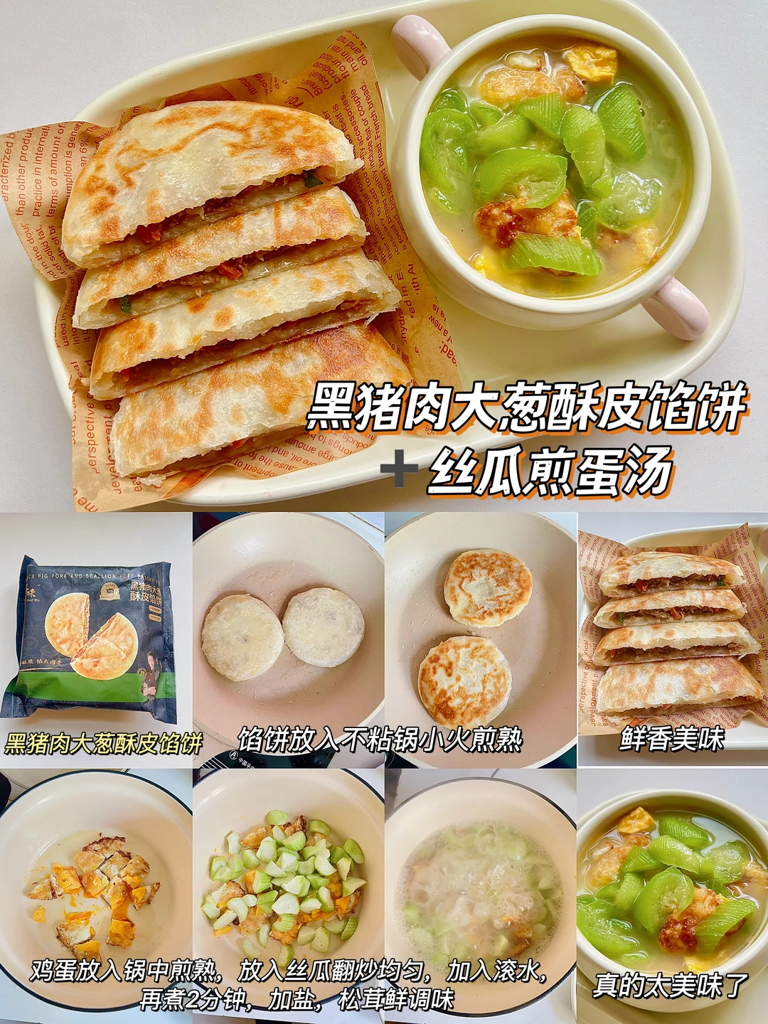 🥣黑猪肉大葱酥皮馅饼➕丝瓜煎蛋汤