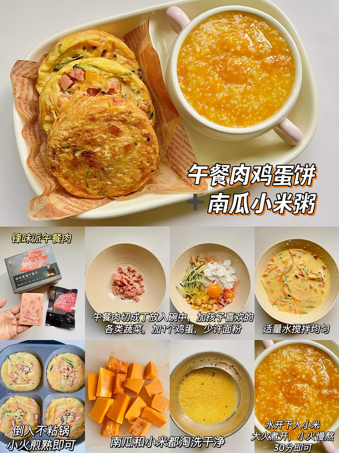 🥣午餐肉鸡蛋饼➕南瓜小米粥
