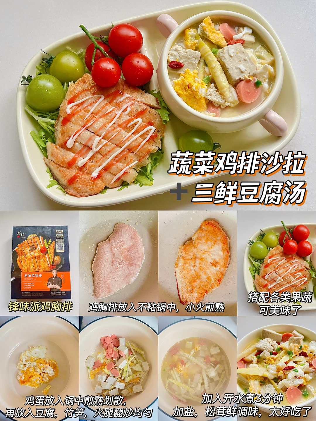 🥣蔬菜鸡排沙拉➕三鲜豆腐汤