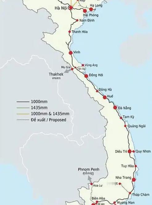 越南现在的铁路网络确实让人直摇头。放眼望去,全国三千多公里的铁路线,大部分还是法国殖民时期留下的米轨,占了足足七成以上,有些路段甚至已经跑了一百多年。这种一米宽的窄轨跑起火车来比长途大巴还慢,从河内晃悠到胡志明市一千六百多公里,要颠上将近三十个小时。更要命的是轨距混乱,米轨、标准轨、混套轨三种并存,简直像用不同尺寸的钥匙去开同一把锁。