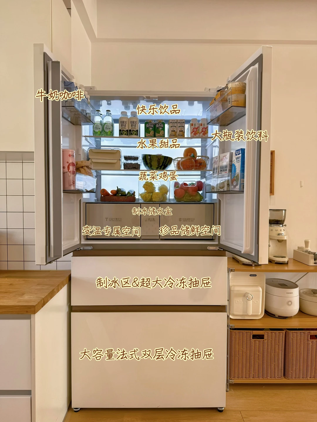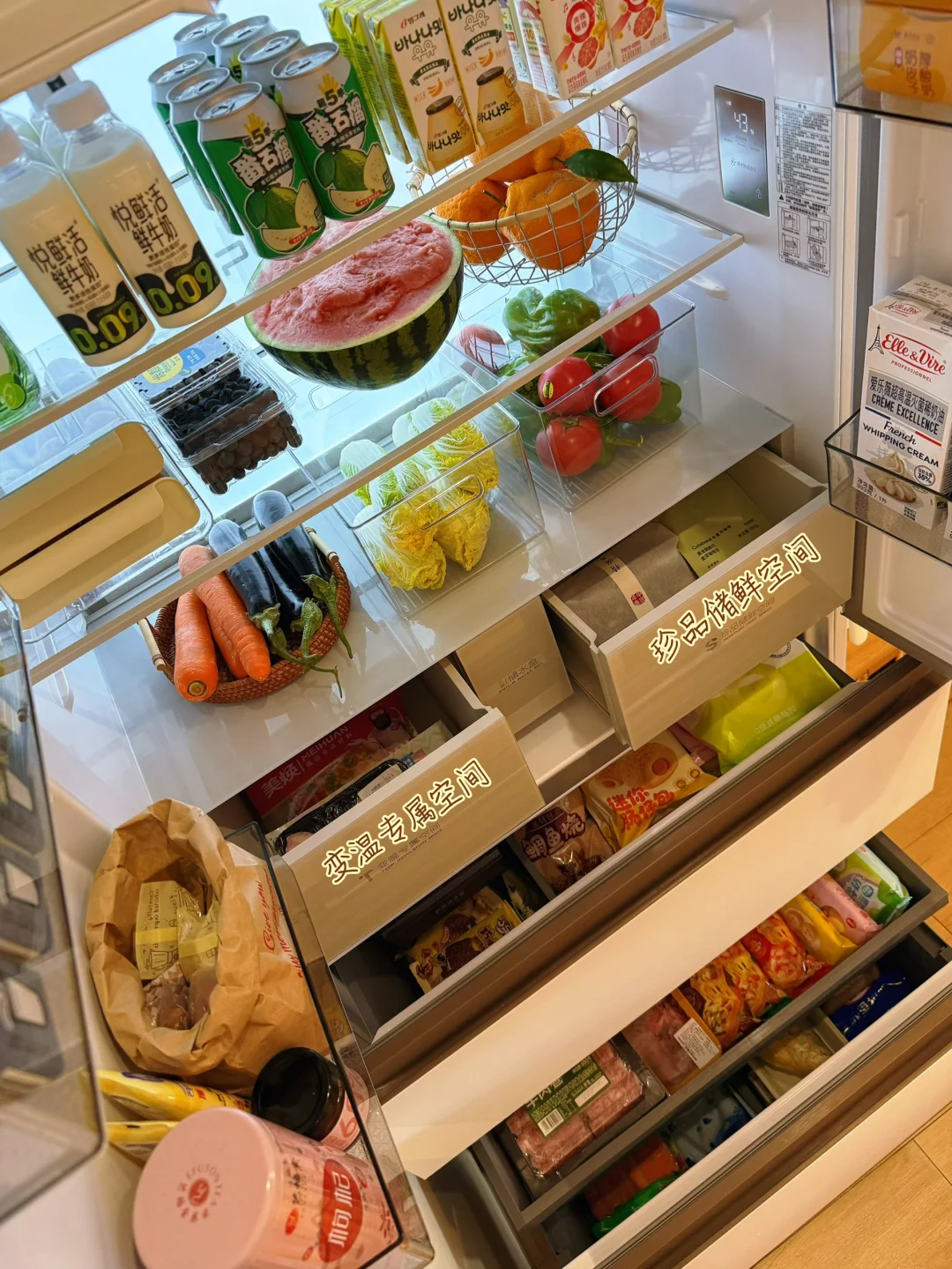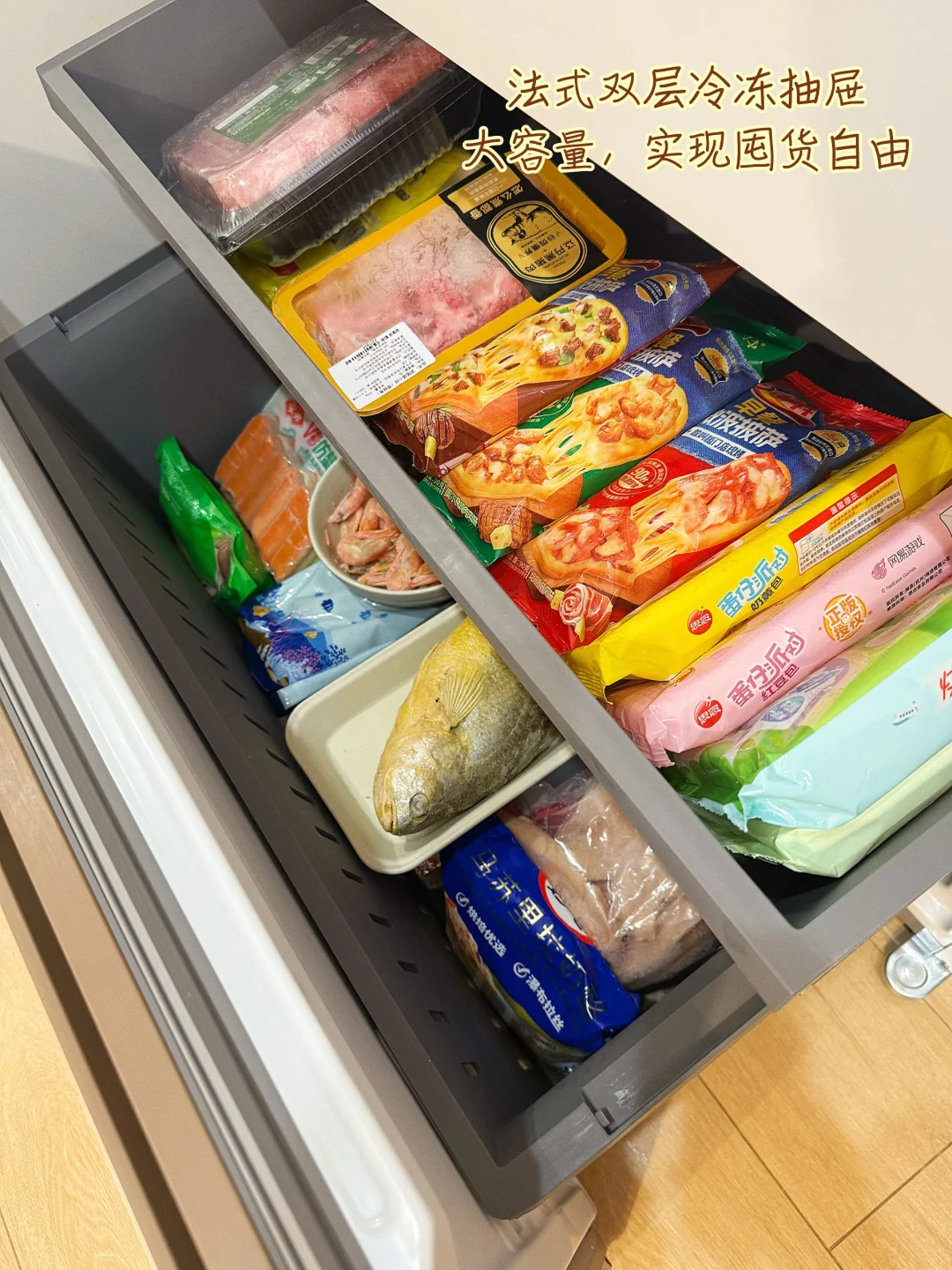 不愧是法式冰箱行业zui大冷冻容积,足足能装下85只整鸡