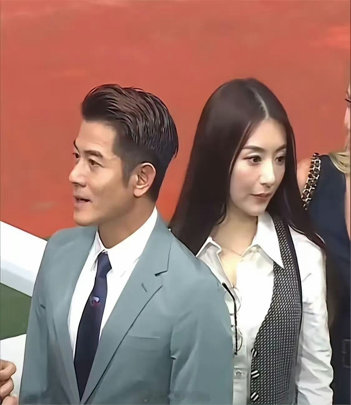 郭富城一点都不像60岁的人,头发又黑又密,比他小都带假发了,应该是爱情的滋润吧
