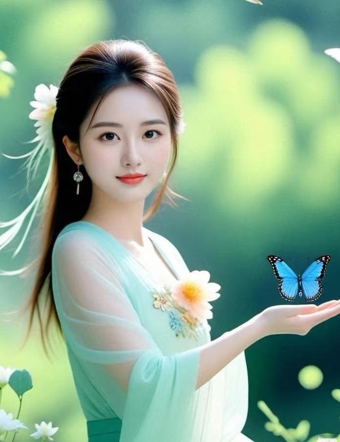 仙气飘飘的少女与翩翩起舞的蝴蝶,仿佛置身于梦幻的仙境之中。