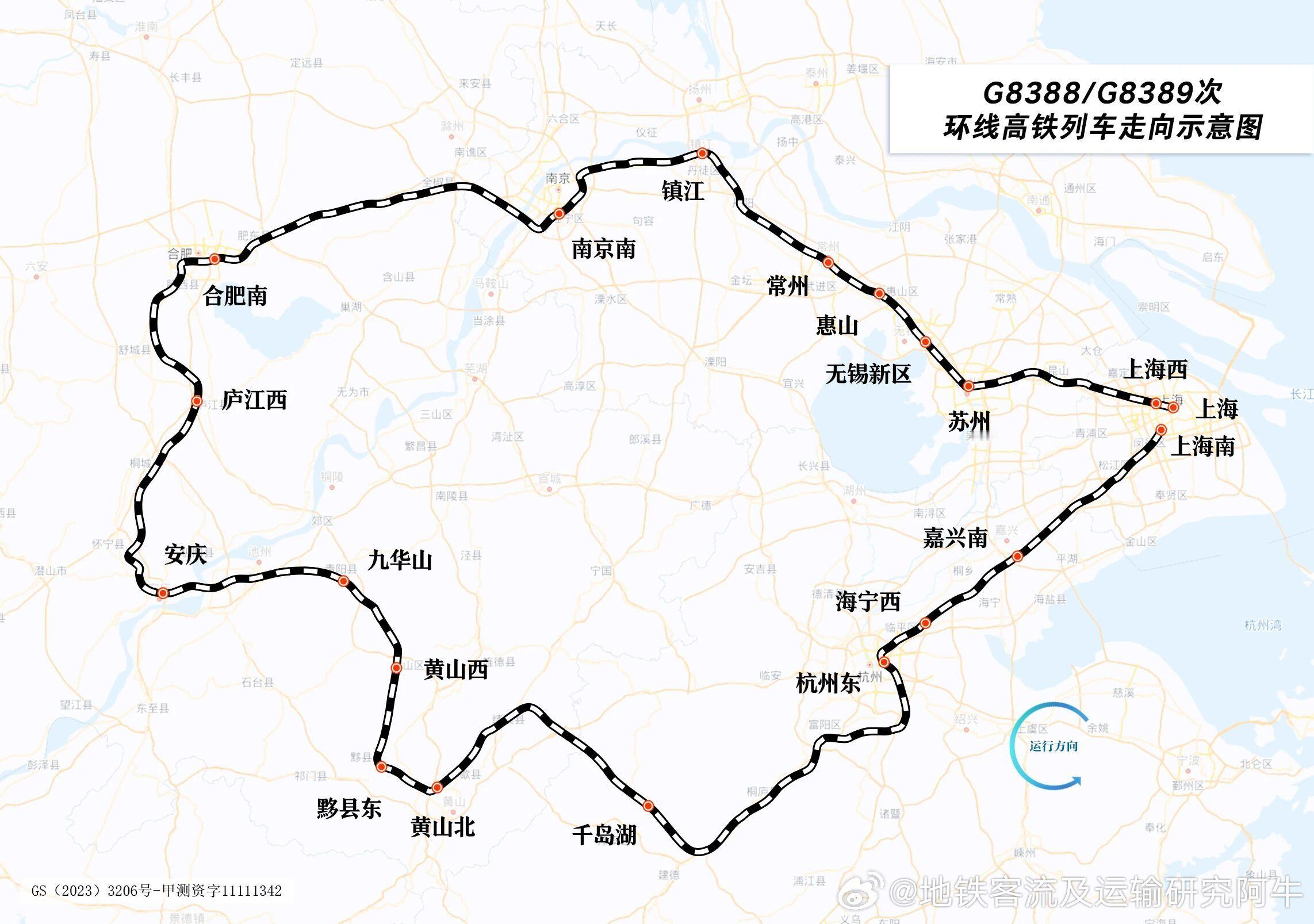【上海铁路 超级环线高铁,客流情况】长三角超级环线高铁G8388/8389次列车(上海-上海南)于2024年6月开行,全程运行里程超1200公里,运行时间约8小时,途经上海、江苏、安徽、浙江三省一市约20座车站。 超级环线高铁G8388/8389次列车途经安徽境内合肥都市圈、皖南国际文化旅游示范区,将九华山、黄山、太平湖等世界级旅游资源与长三角核心城市紧密相连,实现“说走就走、快旅慢游”的便捷出行体验。截至2026年3月底,该趟列车累计发送旅客约201.9万人次,日均客座率约78.8%。(中国铁路)——有坐过这趟车的网友吗?