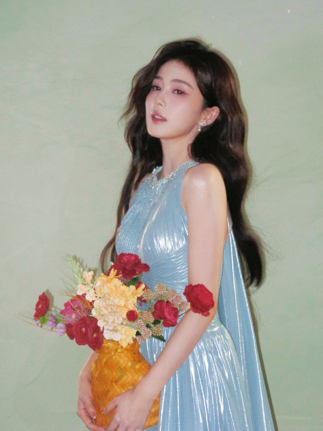 白鹿|跑男发布会造型出图,超季礼服全球首穿,大褶量裙摆垂坠如澜,清新灵动,气质天成🌊