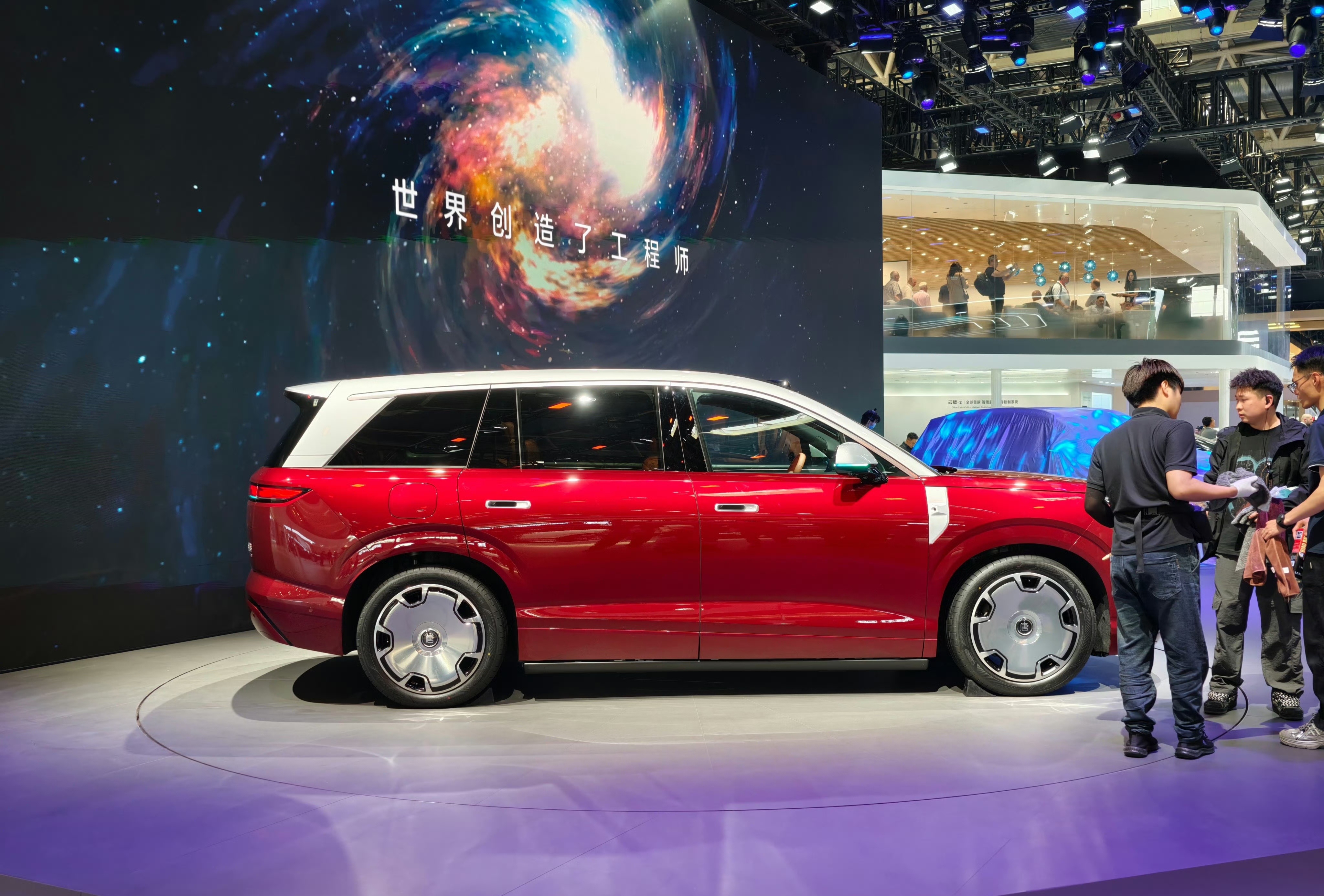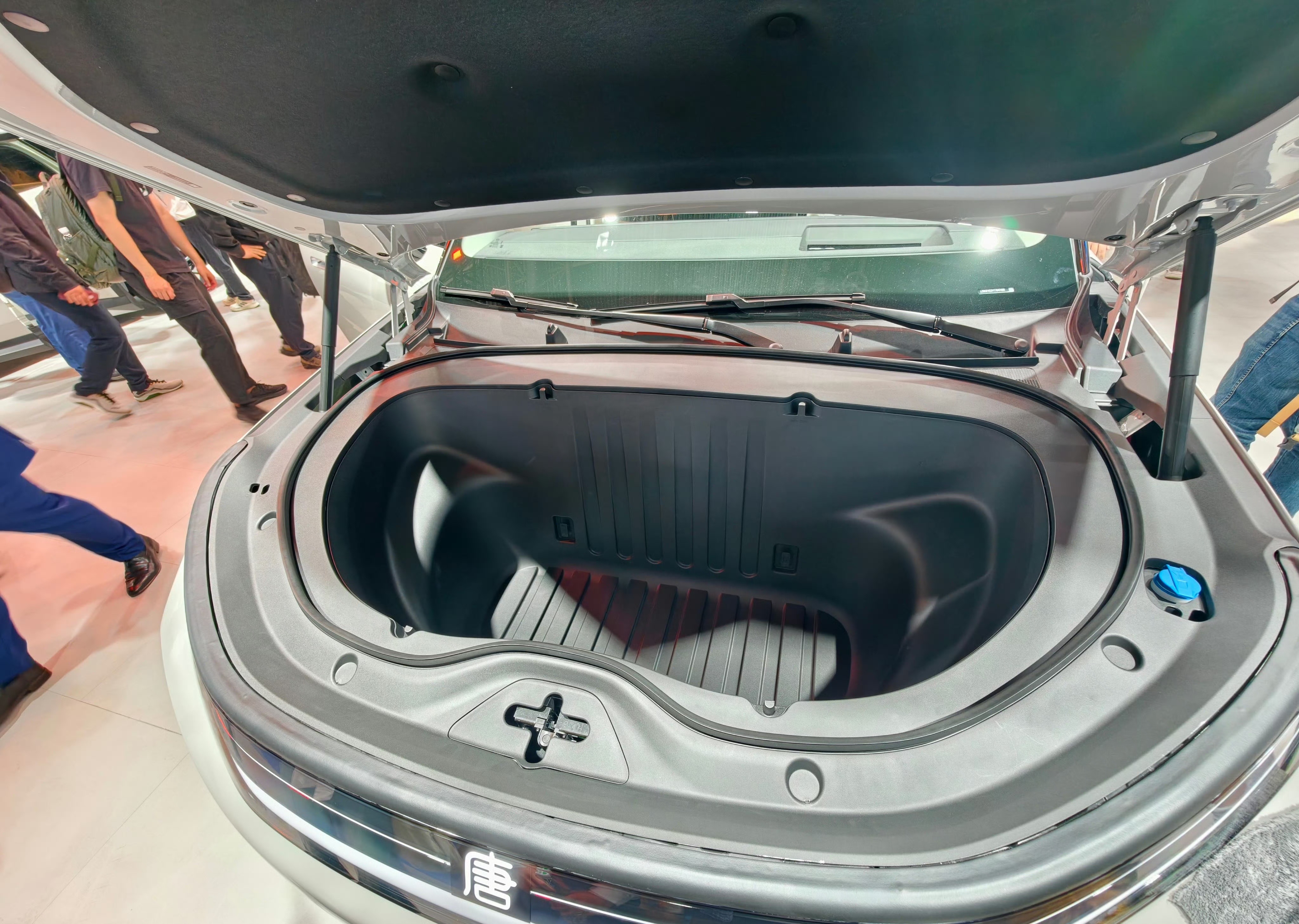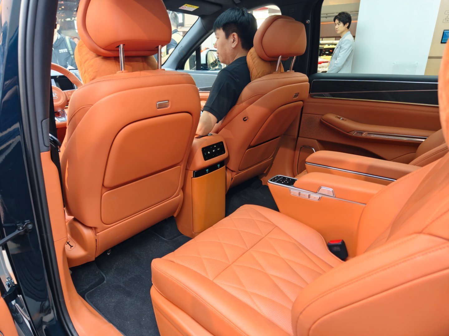 趁今天人流没那么大,挤进去拍了下,接近5.3米车长,闪充、二代刀片电池、天神之眼5.0、还有后轮转向前备箱后备箱都巨大,俩个零重力座椅、电吸门…