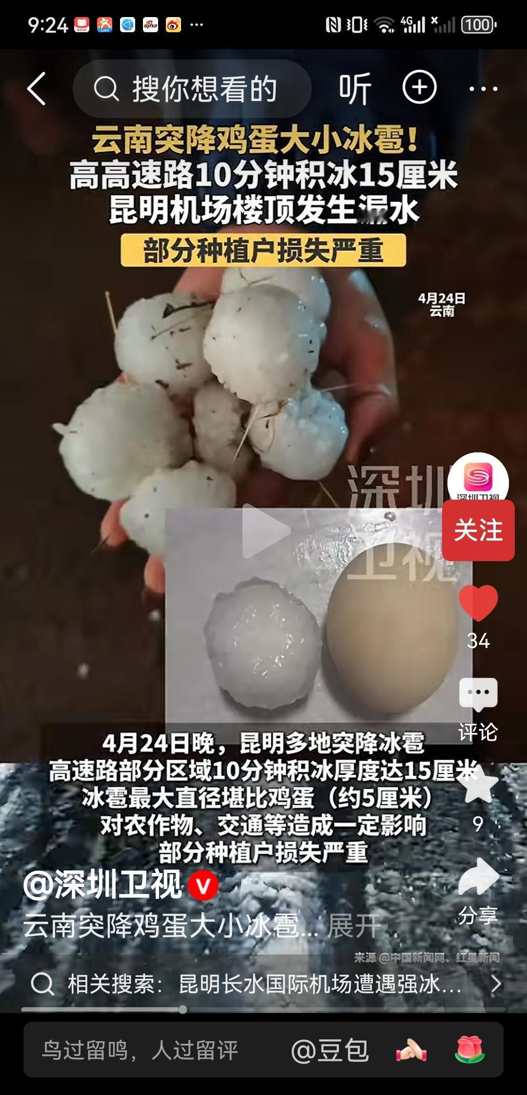 这种极端天气很少见。突如其来的冰雹袭击,给昆明造成较大损失,特别是对农业生产和周围群众的生活造成诸多困难。(图片源自网络视频截图侵即删) 春日生活打卡季