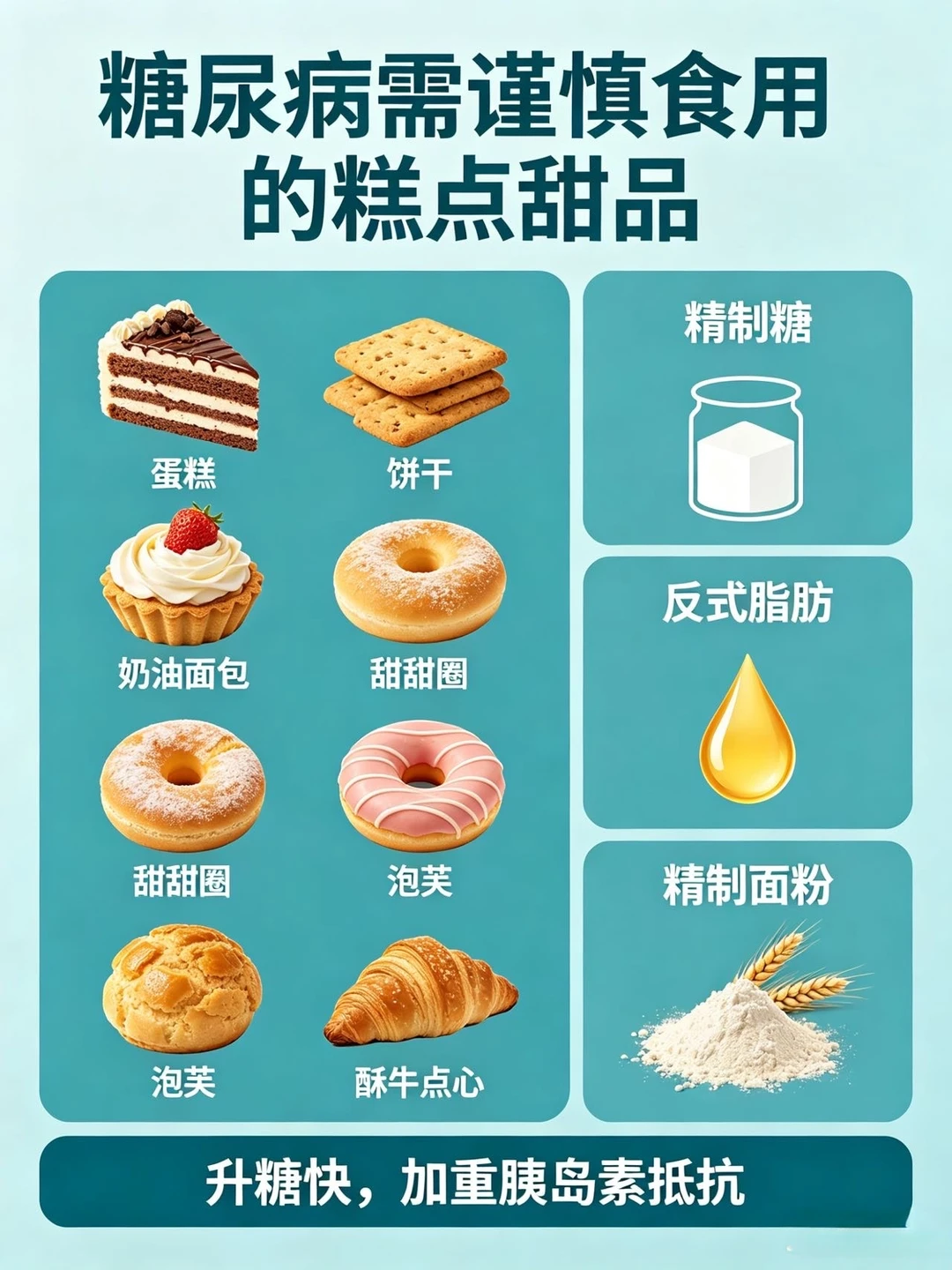 特点:精制糖+反式脂肪+精制面粉,升糖快还加重胰岛素抵抗。