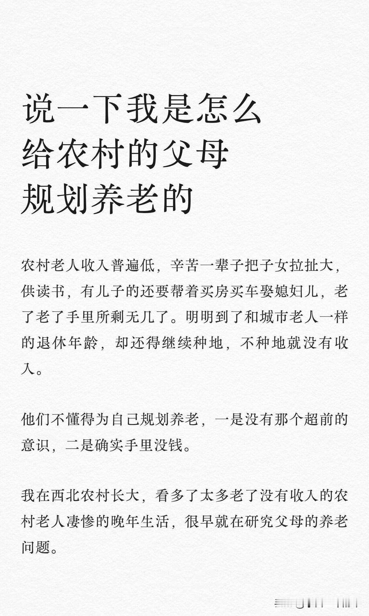 给农村爸妈做养老规划,我踩过坑后才明白这两件事 我是西北农村出来的,打小就看着