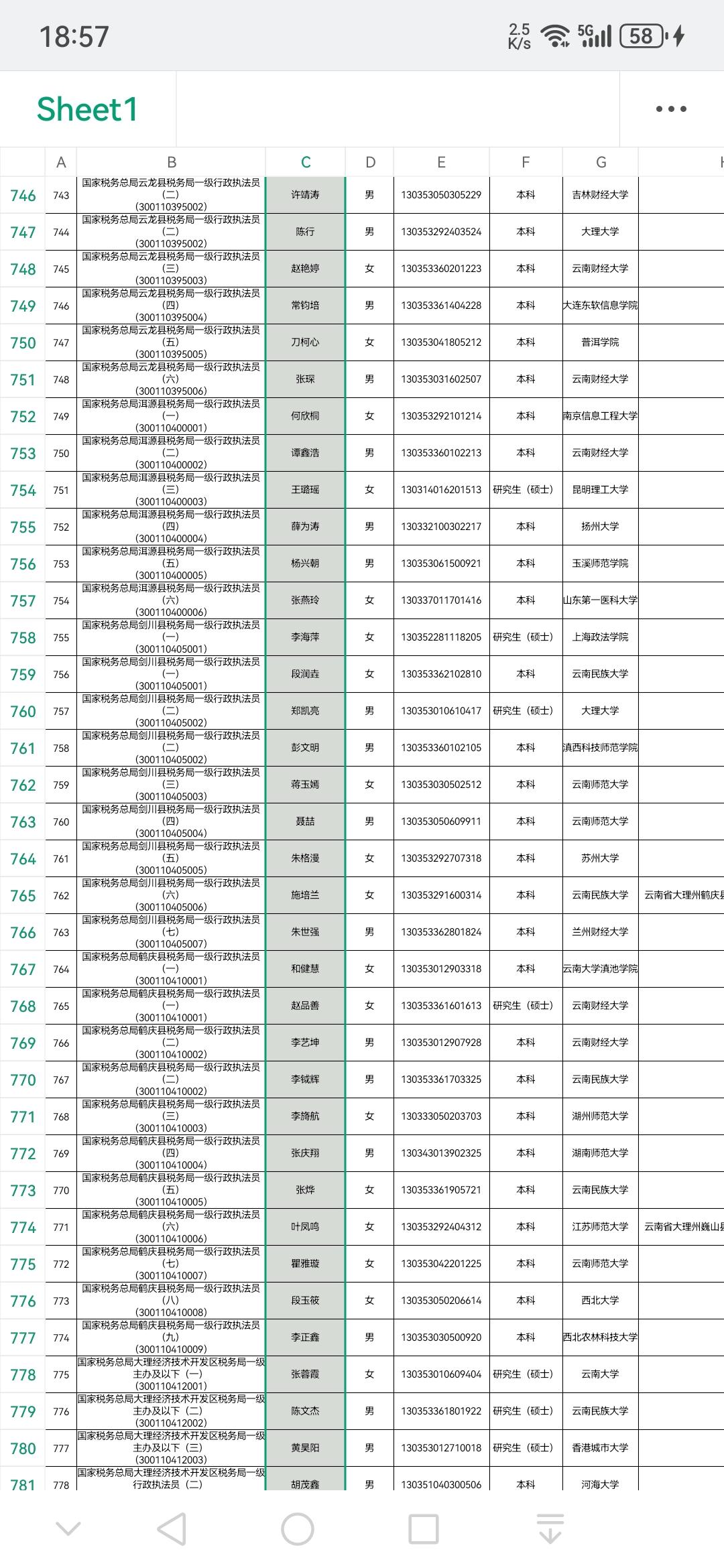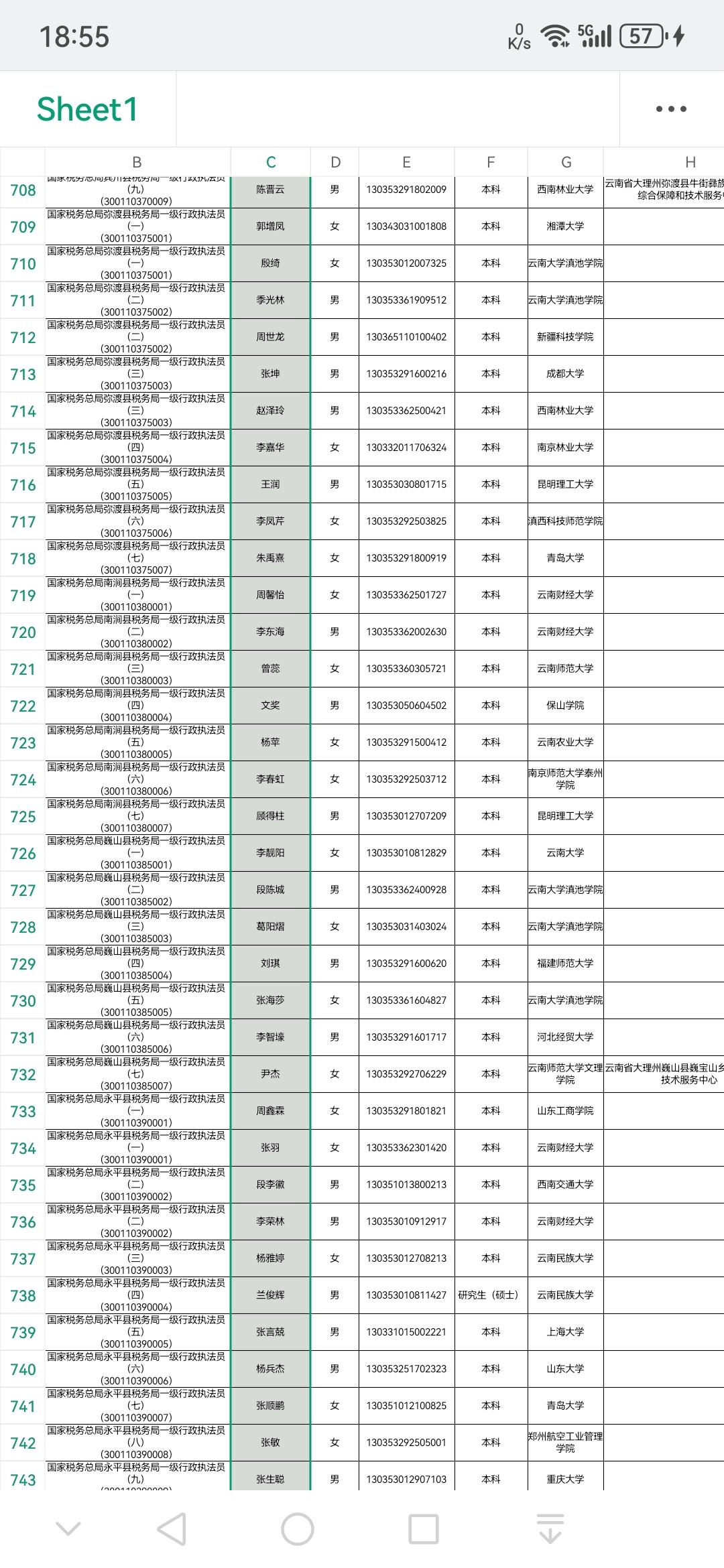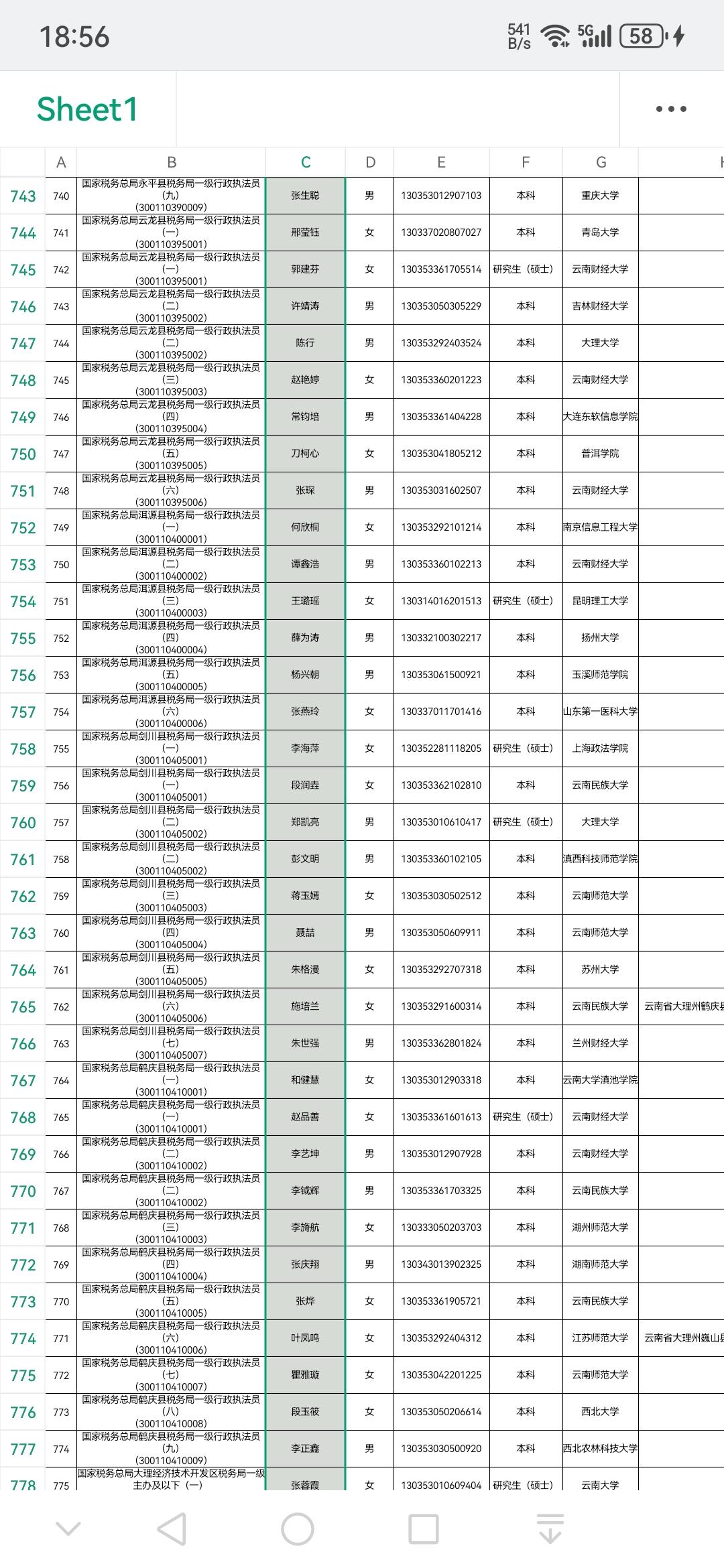 【图片为大理州国税局录取名单情况】