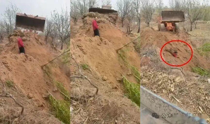 真没想到,在当今的法治社会,在光天化日之下,山西代县居然发生了一起大埋活人的恶性事件!连日来,有一段视频在全网疯传。这段网传视频看得人毛骨悚然、心里发紧,画面中能听到有人撕心裂肺地大哭。坡道上,一位老年男子开着轰鸣的铲车,挖起一堆又一堆的泥土,直接倒在下面那个红衣村民身上,明显是要将其活埋。而红衣村民整个身子渐渐被埋入土中,只剩下头部和右臂还露在外面,看着特别危险,生死只在一线之间!