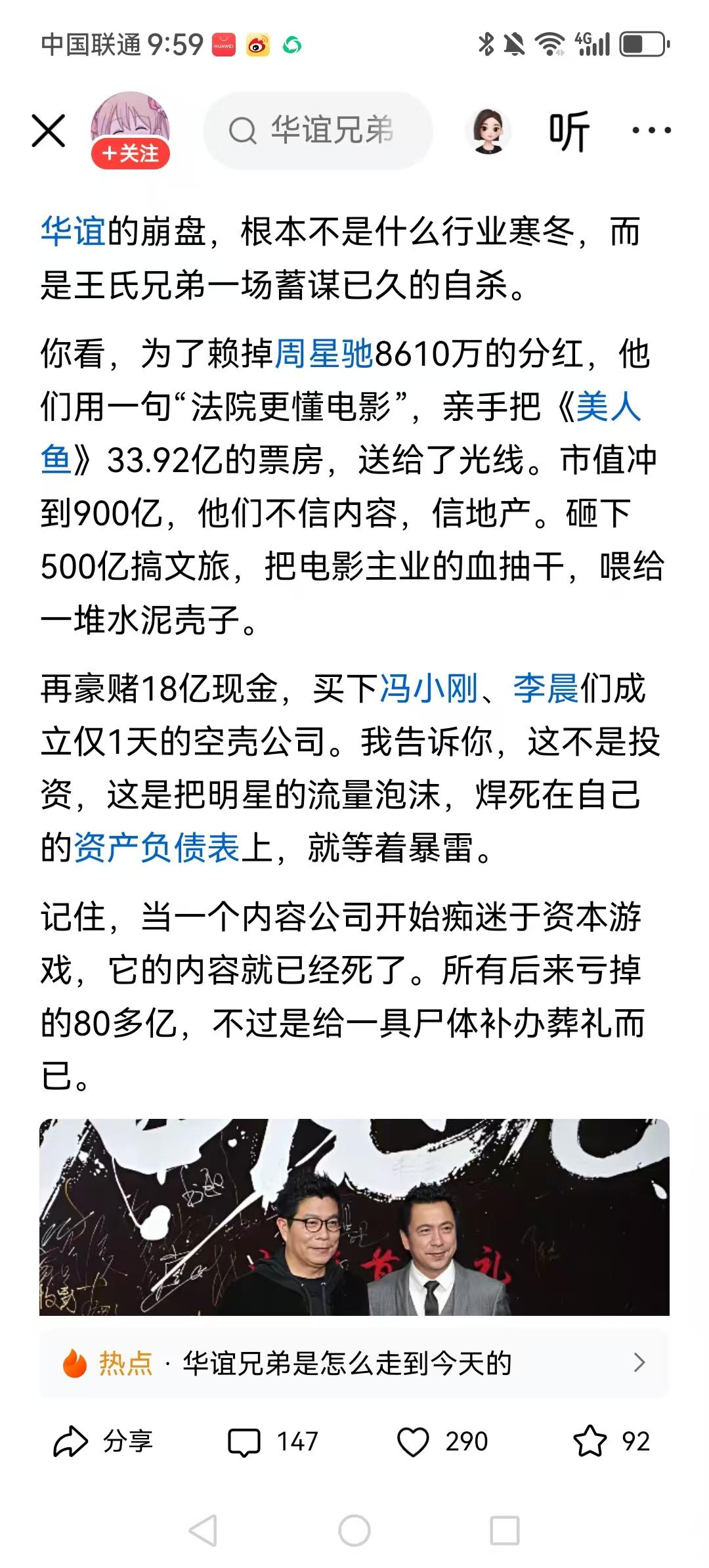 王氏兄弟亲手葬送华谊,弃内容玩资本,自掘坟墓,崩盘纯属活该!