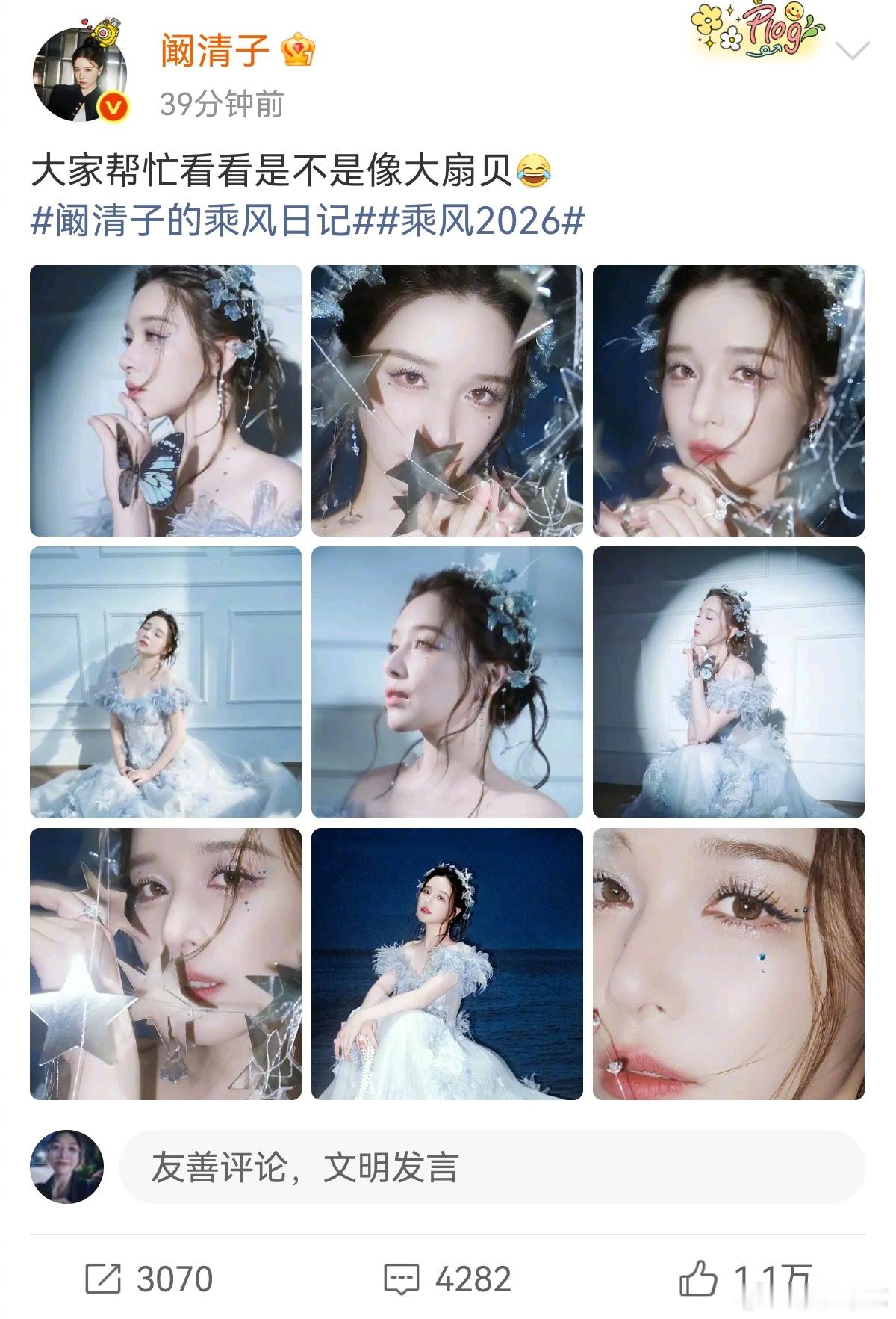 阚清子回应像大扇贝 在线玩梗大方回应被说像大扇贝,主动晒图调侃自己,完全不玻璃心,不被外貌定义,拒绝身材焦虑,乐观又可爱。明明是人鱼公主既视感,灵动眉眼+温柔氛围感,自信松弛的样子超可爱!乘风直播乘风2026